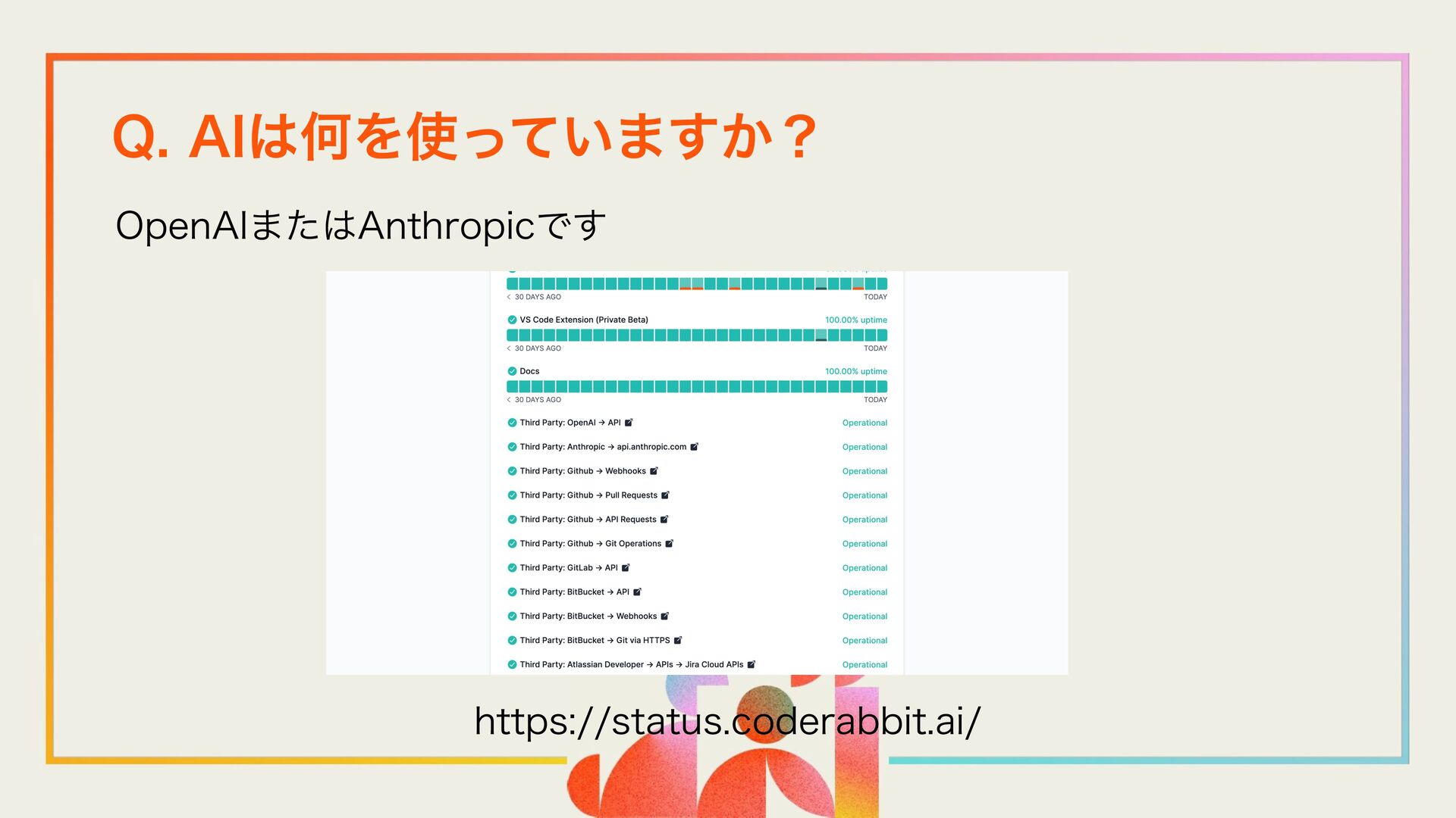 ·ͱΊ w $PEF3BCCJU"*ίʔυϨϏϡʔαʔϏε w ֤छ"*ίʔσΟϯάͱγʔϜϨεʹ࿈ܞ w $-*ɺ74$PEFػೳ֦ுແྉ