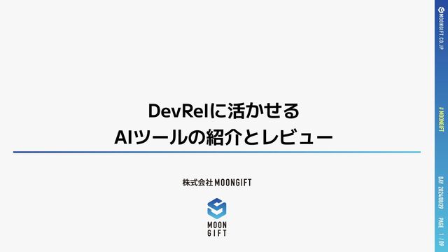 PAGE # MOONGIFT / 09 DAY 2024/08/29 DevRelに活かせる AIツールの紹介とレビュー 1