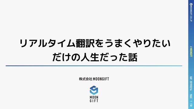 PAGE # MOONGIFT / 50 DAY 2019/02/14 まとめ •リアルタイム翻訳システムは色々闇が深い •予算がない場合はシステム化してもいいんじゃないだろうか