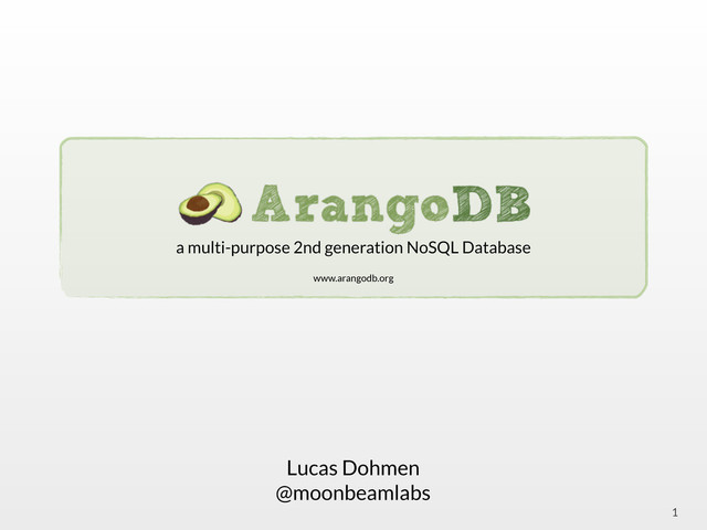 model database ‣ Convenient querying ‣ Extendable through JS & MRuby ‣ High performance & space efficiency ‣ Easy to use ‣ Started in Sep 2011 ‣ Version 1.0 in Sep 2012 ‣ Version 1.4 in Aug 2013 ‣ Multi Database Support ‣ Foxx API Framework ‣ Master/Slave Replication