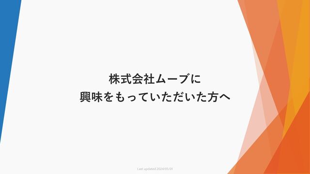 株式会社ムーブ 株式会社ムーブに 興味をもっていただいた方へ Last updated 2024/05/01
