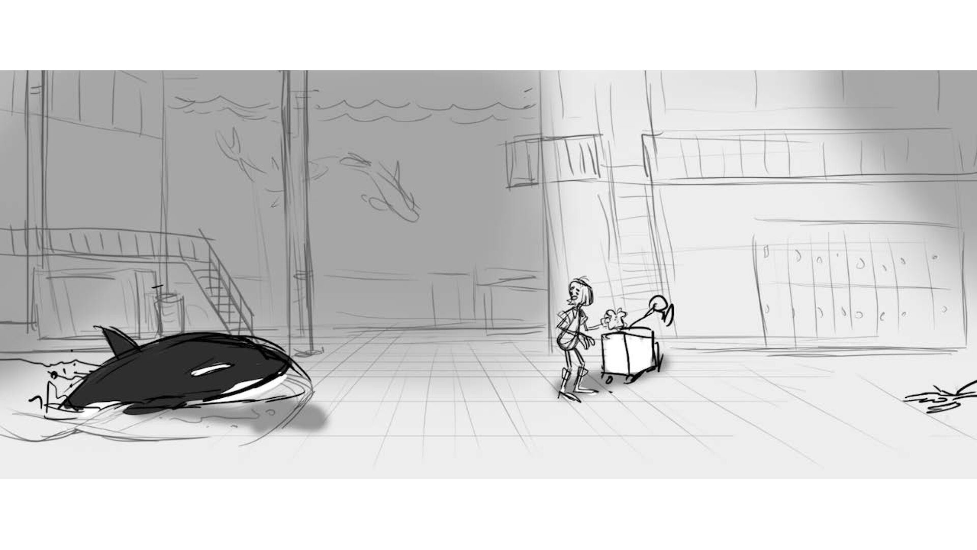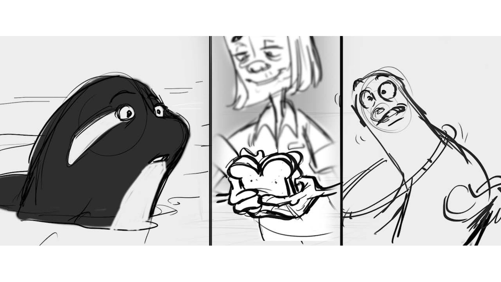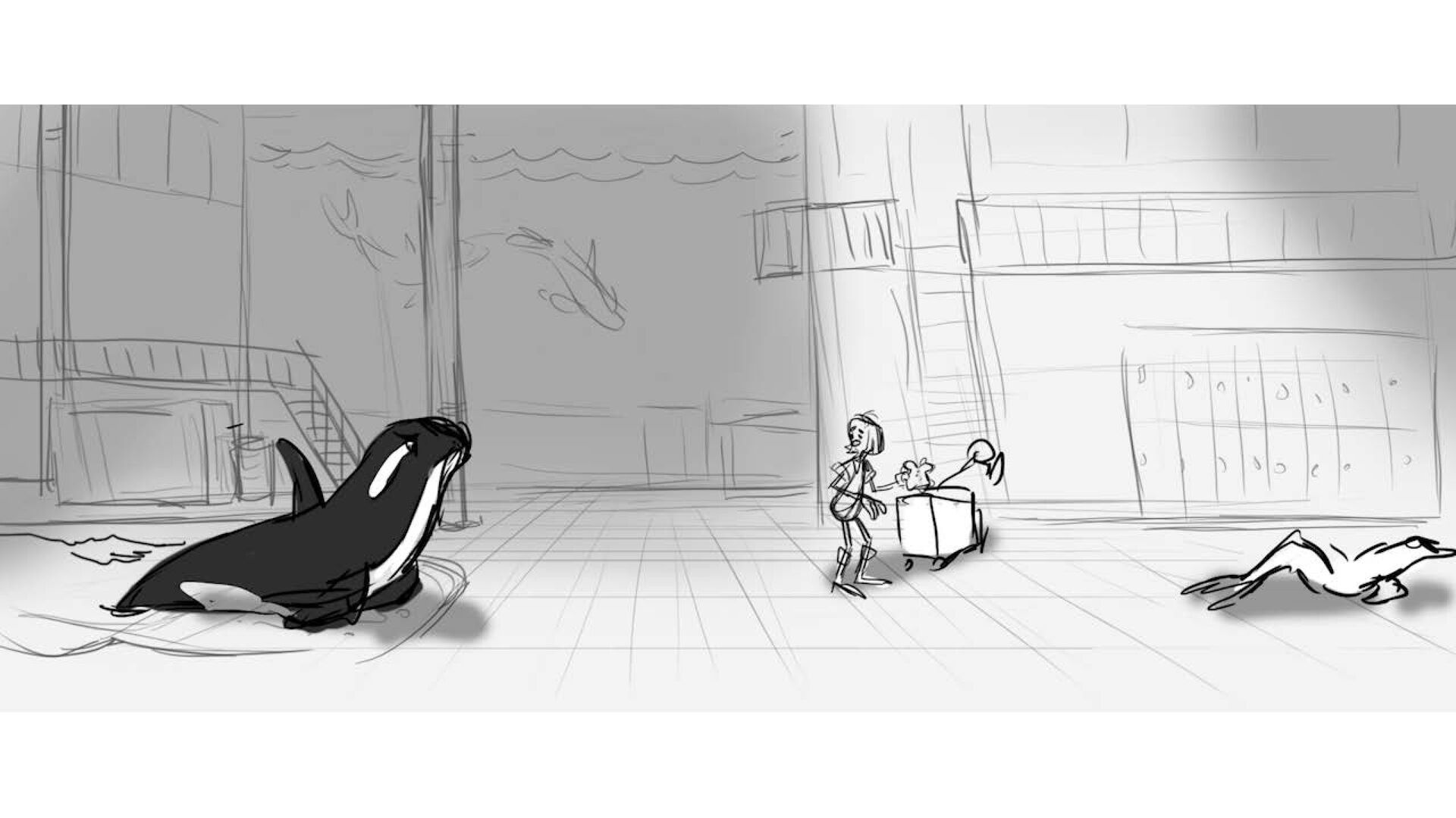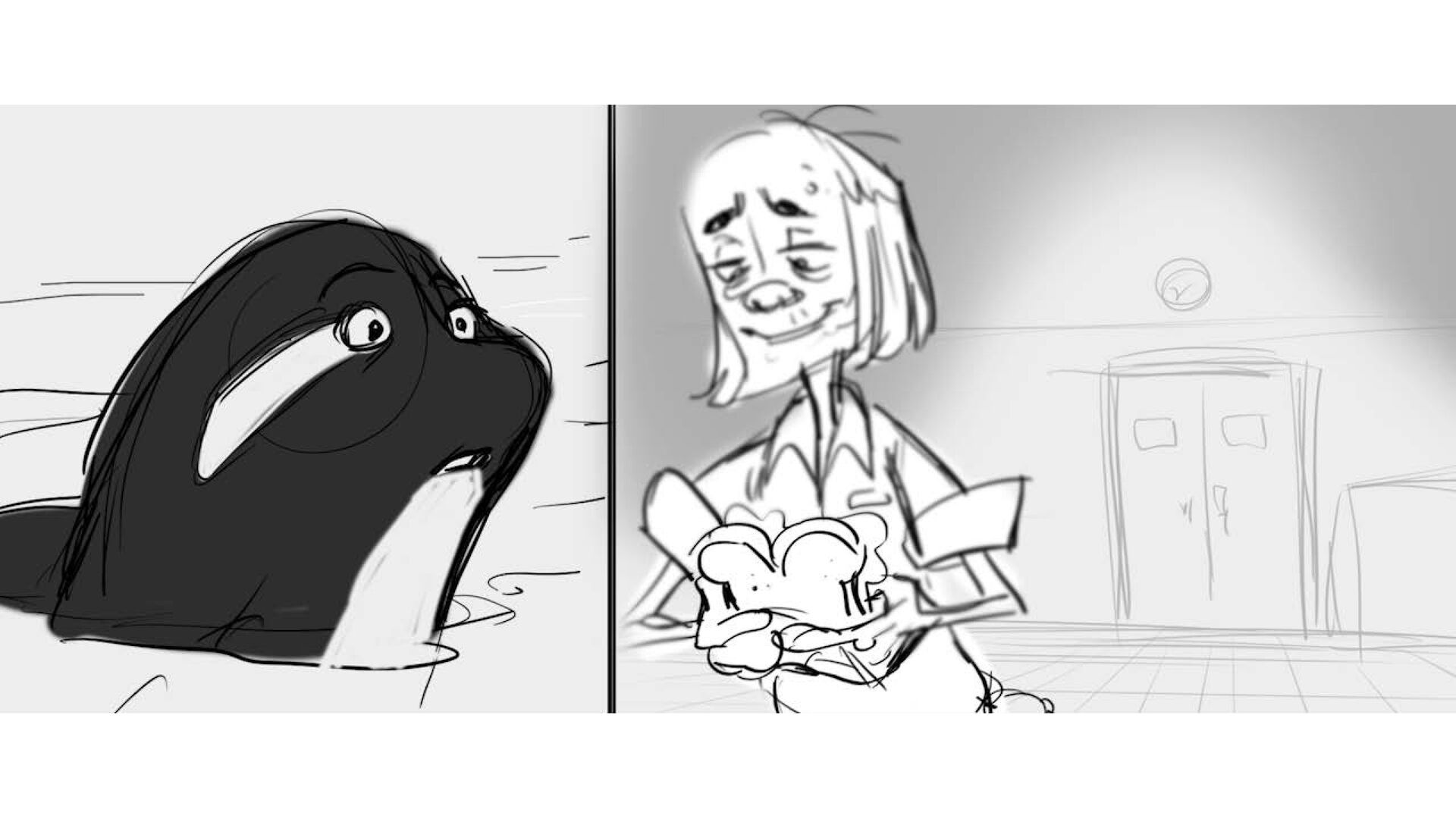 A sneaky seal and competing killer whale perform for a janitor in the backrooms of a seapark after hours, in order to attain his delicious Ham and Swiss sandwich perfection.