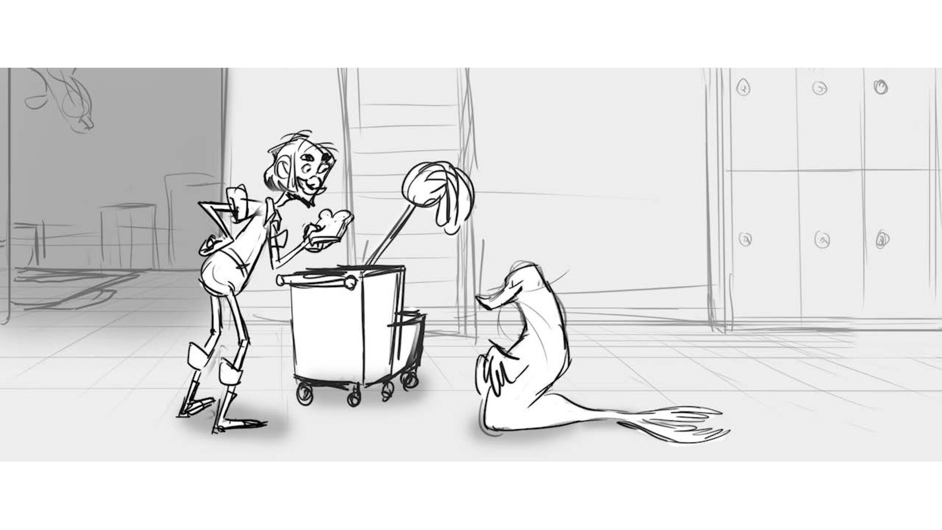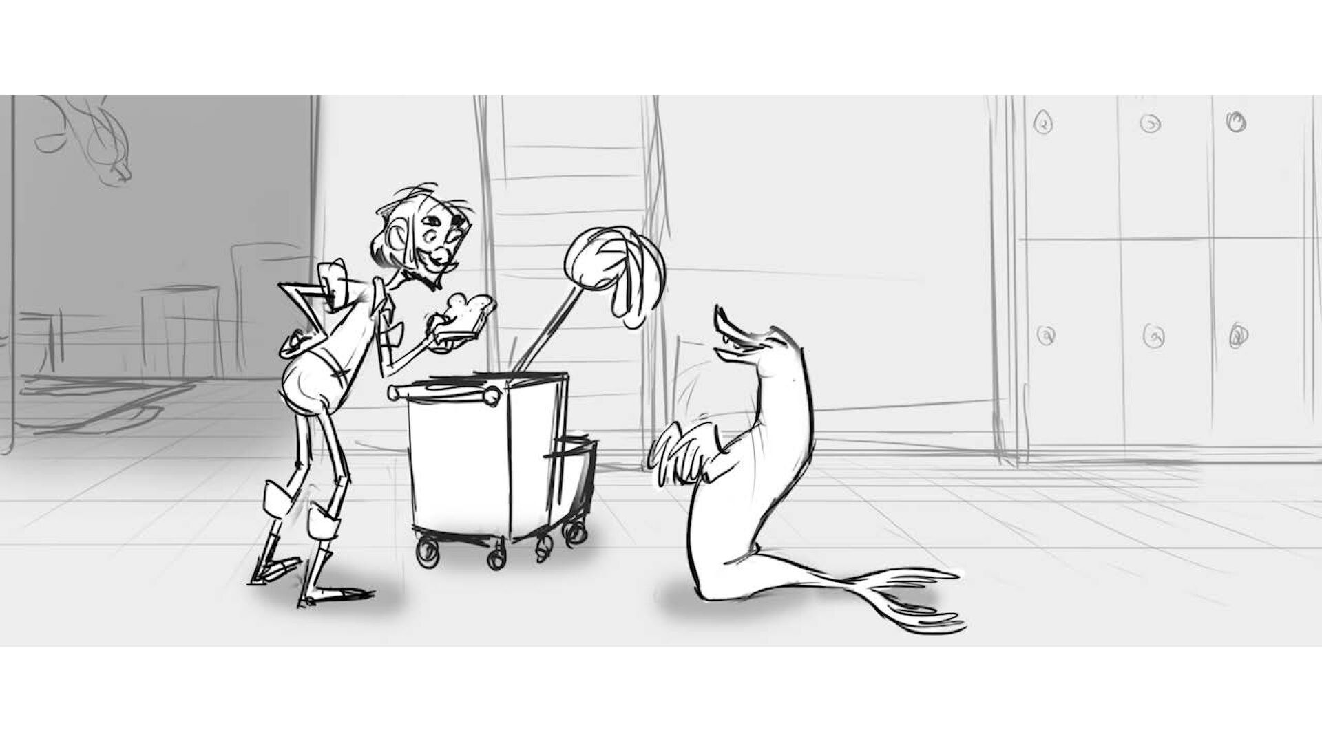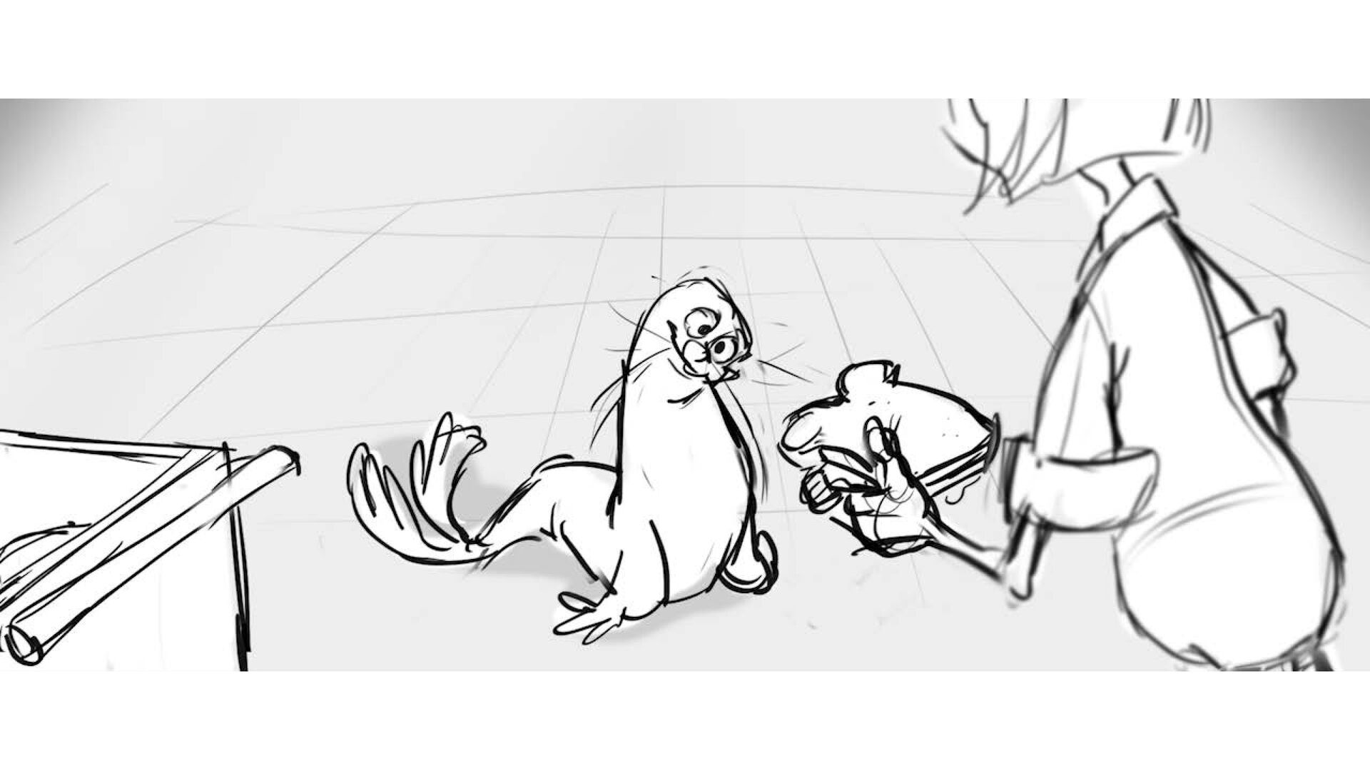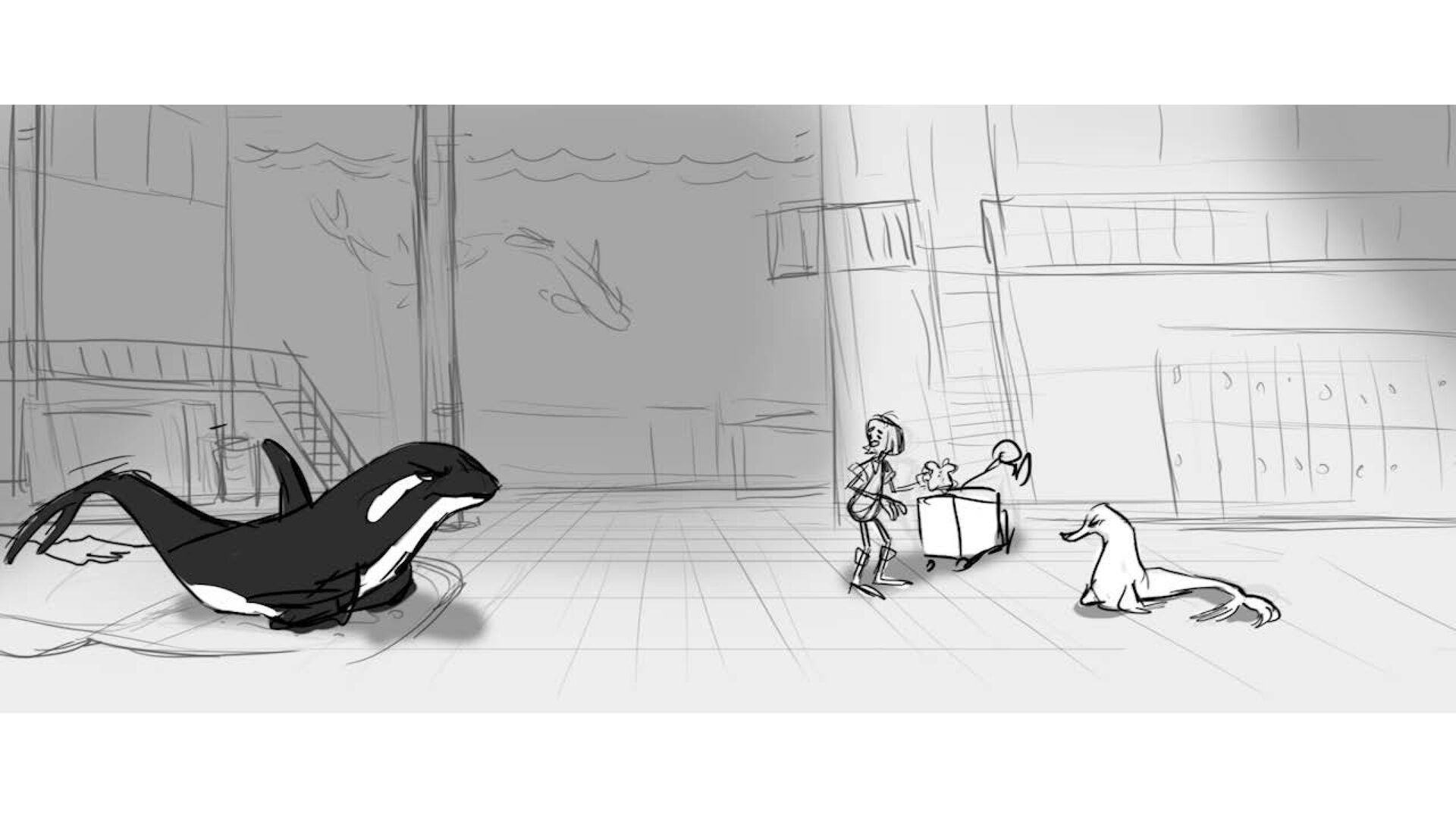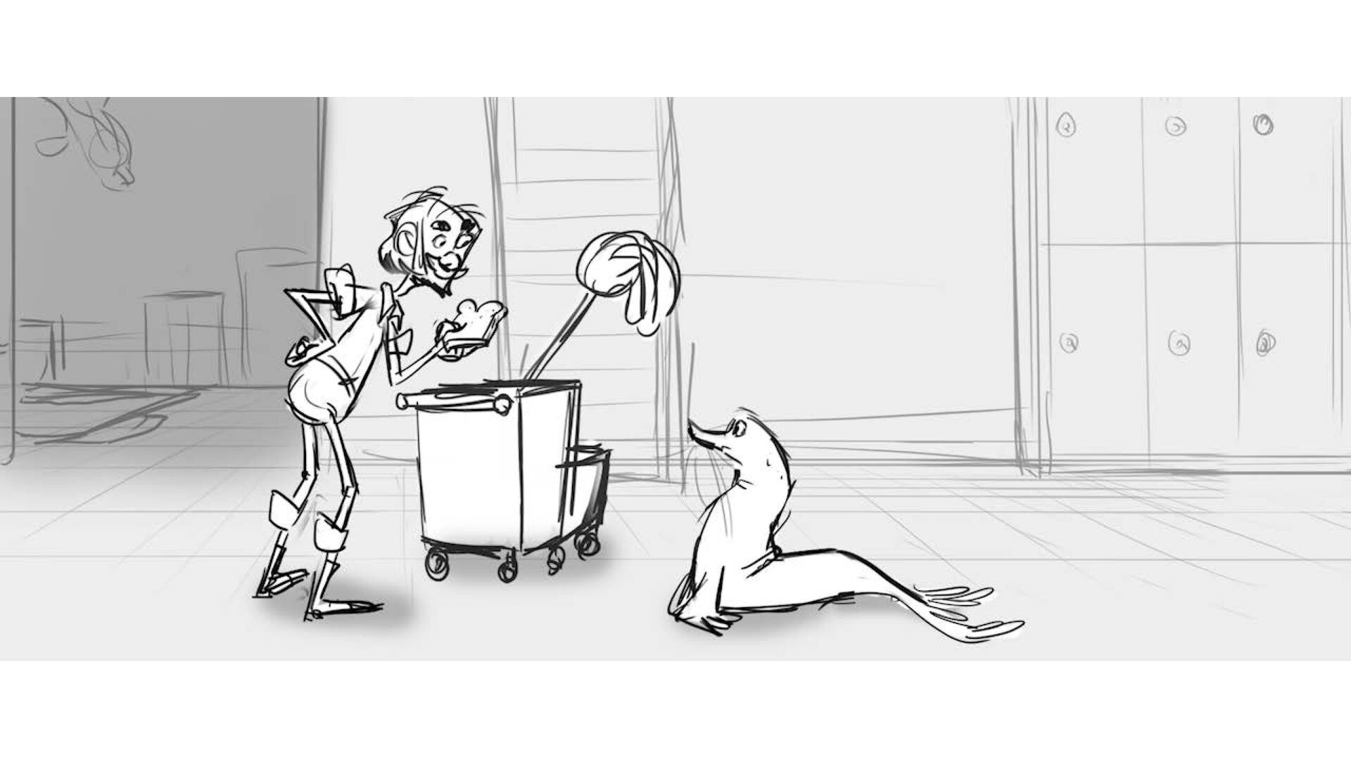 A sneaky seal and competing killer whale perform for a janitor in the backrooms of a seapark after hours, in order to attain his delicious Ham and Swiss sandwich perfection.