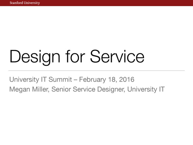 How do our customers experience our services? How can we better support service owners and service delivery teams in providing seamless and quality service experiences? How does design thinking support great service experiences? In this lightning talk, I present my vision for designing for service for University IT, and the mission of the new Service Design Team.