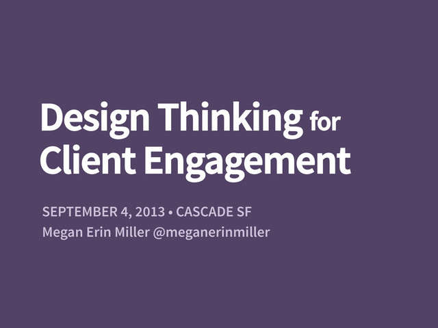 We will look at how using physical tools and time-bound workshops can encourage client creativity and engagement, and how setting a tone of openness, compassion, and play can transform your client’s experience in your next project. You'll walk away with a deeper understanding of the design thinking mindset, and tips and tricks for crafting your own arsenal of physical artifacts to aid you in your design process.