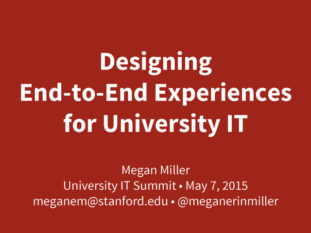 Designing End-to-End Experiences for University IT Megan Miller University IT
