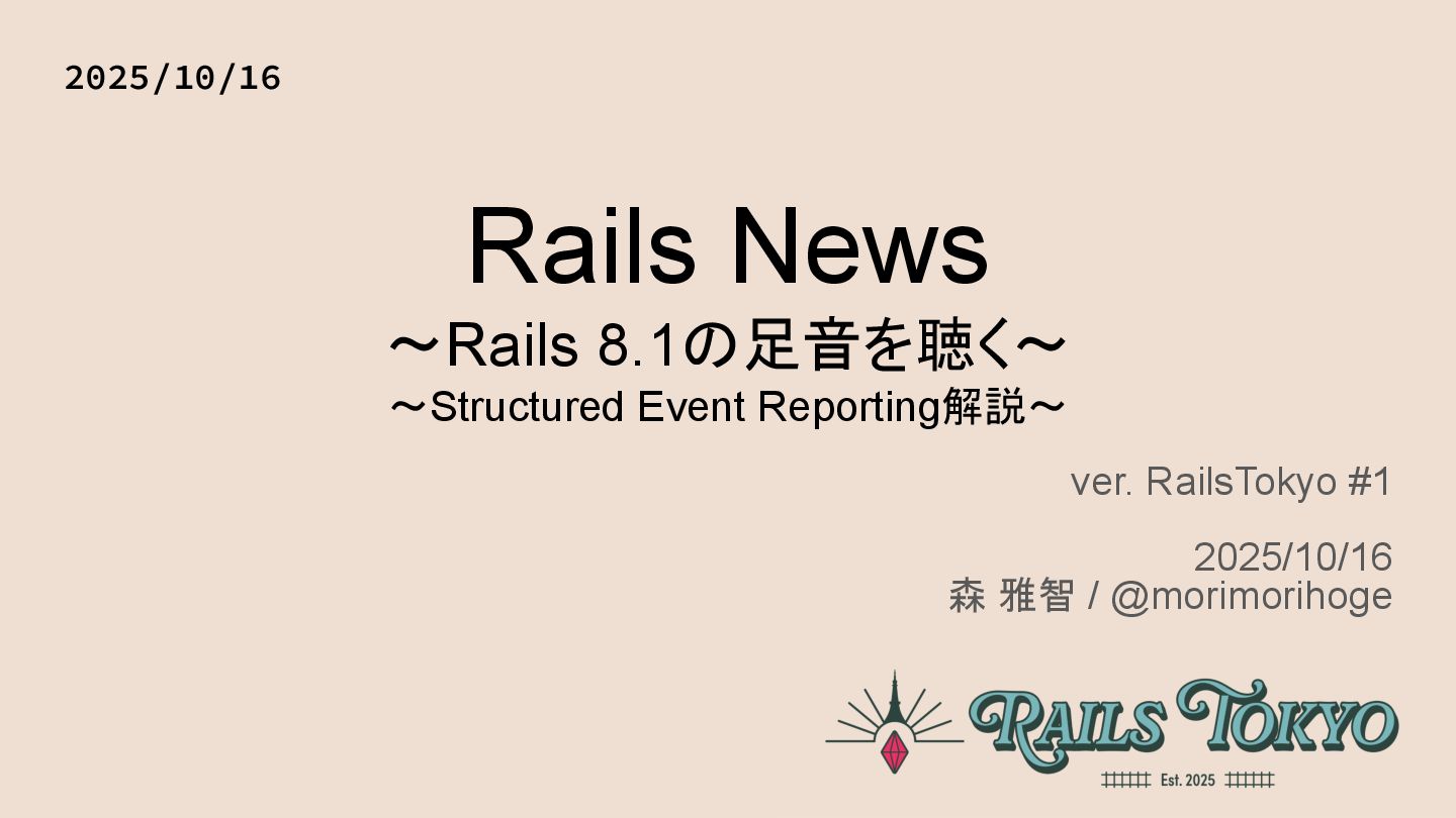 Rails News ~Rails 8.1の足音を聴く~ ~Structured Event Reporting解説~ ver. RailsTokyo #1