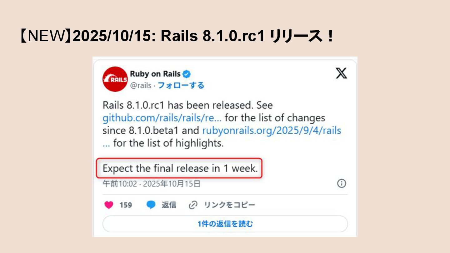 【NEW】2025/10/15: Rails 8.1.0.rc1 リリース!