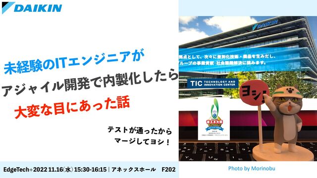 ະܦݧͷ*5ΤϯδχΞ͕ ɹΞδϟΠϧ։ൃͰԽͨ͠Β େมͳʹ͋ͬͨ ςετ͕௨͔ͬͨΒ ɹϚʔδͯ͠Ϥγʂ Photo by Morinobu &EHF5FDI