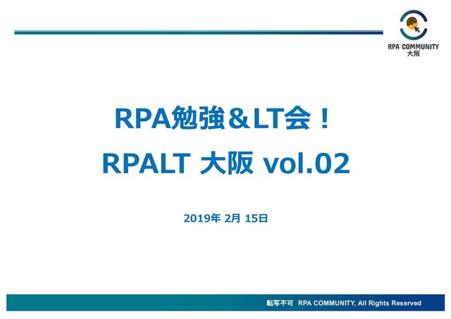転写不可 RPA COMMUNITY, All Rights Reserved RPA勉強&LT会! RPALT ⼤阪 vol.02
