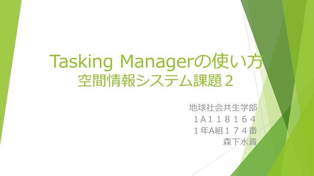 Tasking Managerの使い方 空間情報システム課題2 地球社会共生学部 1A118164 1年A組174番 森下水貴