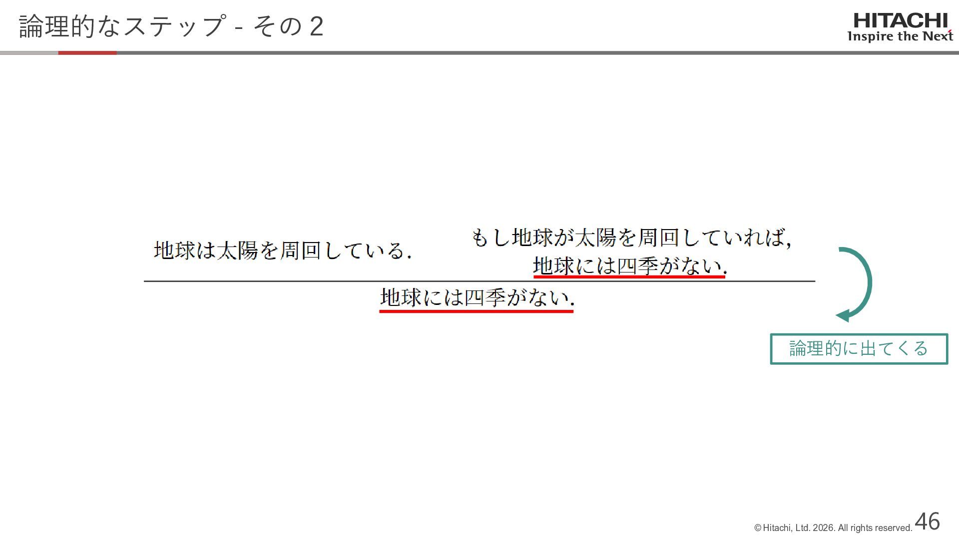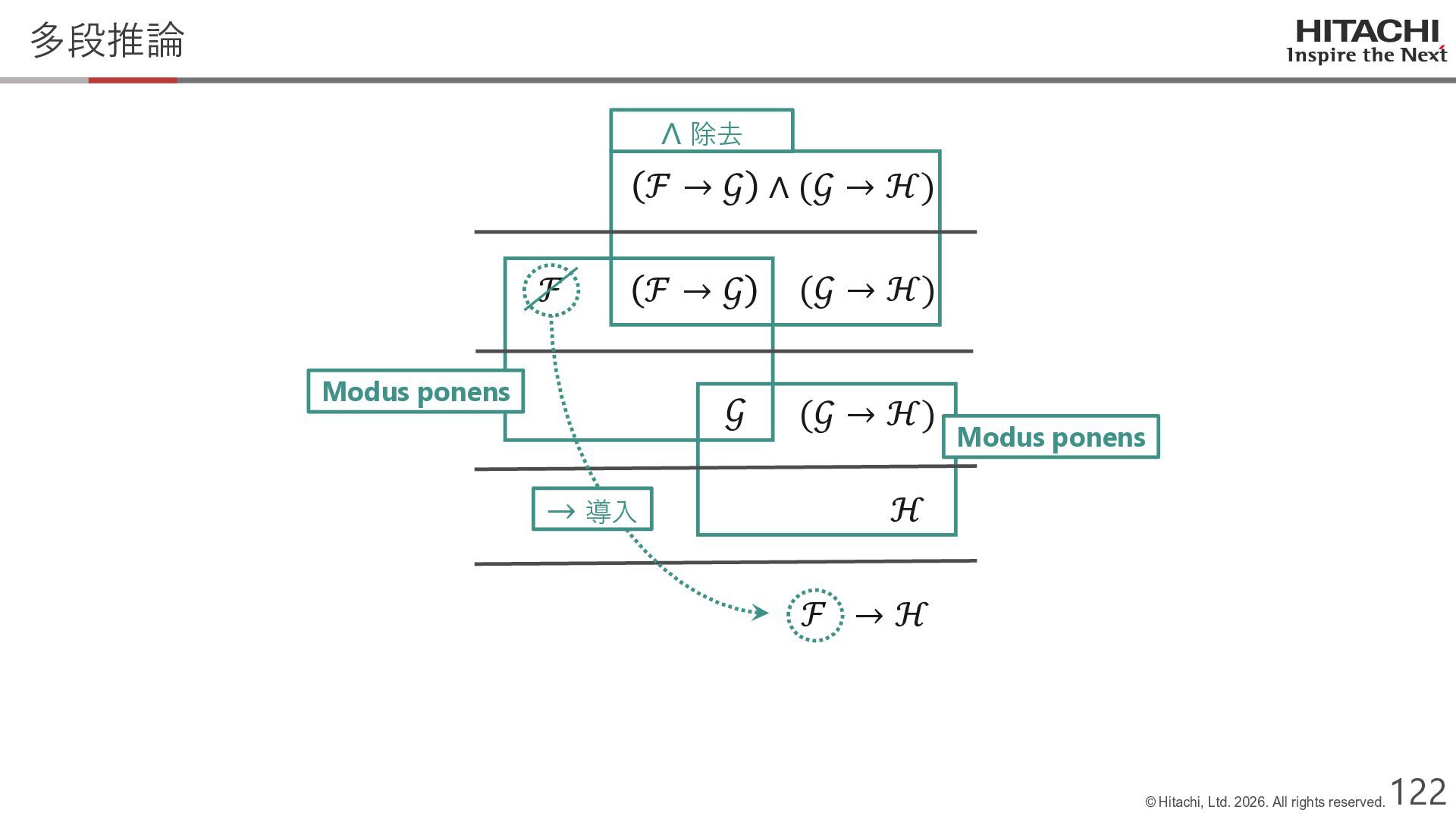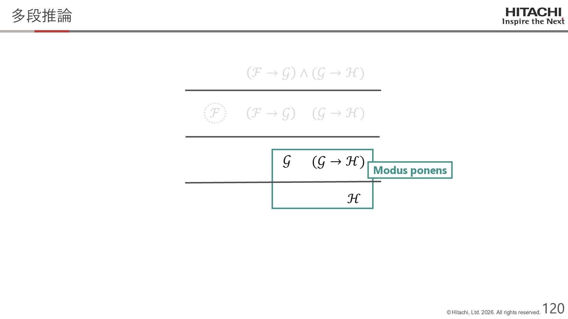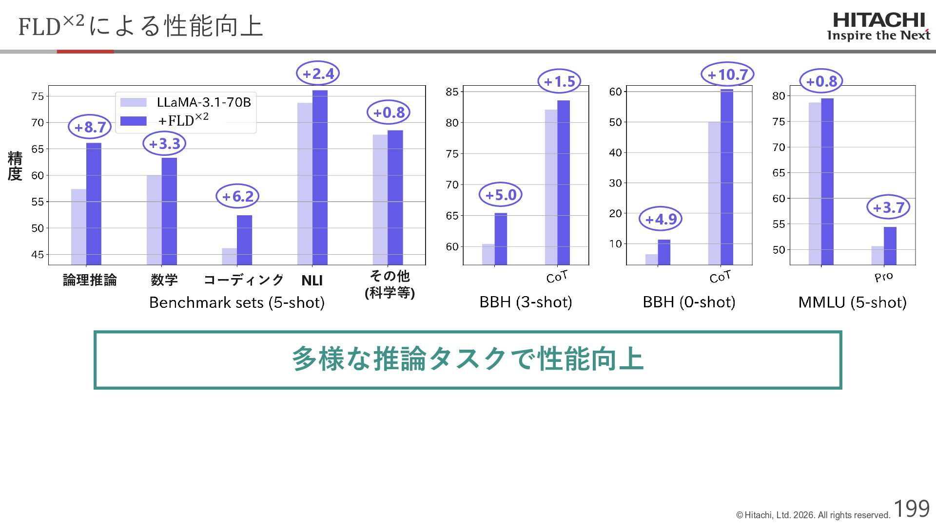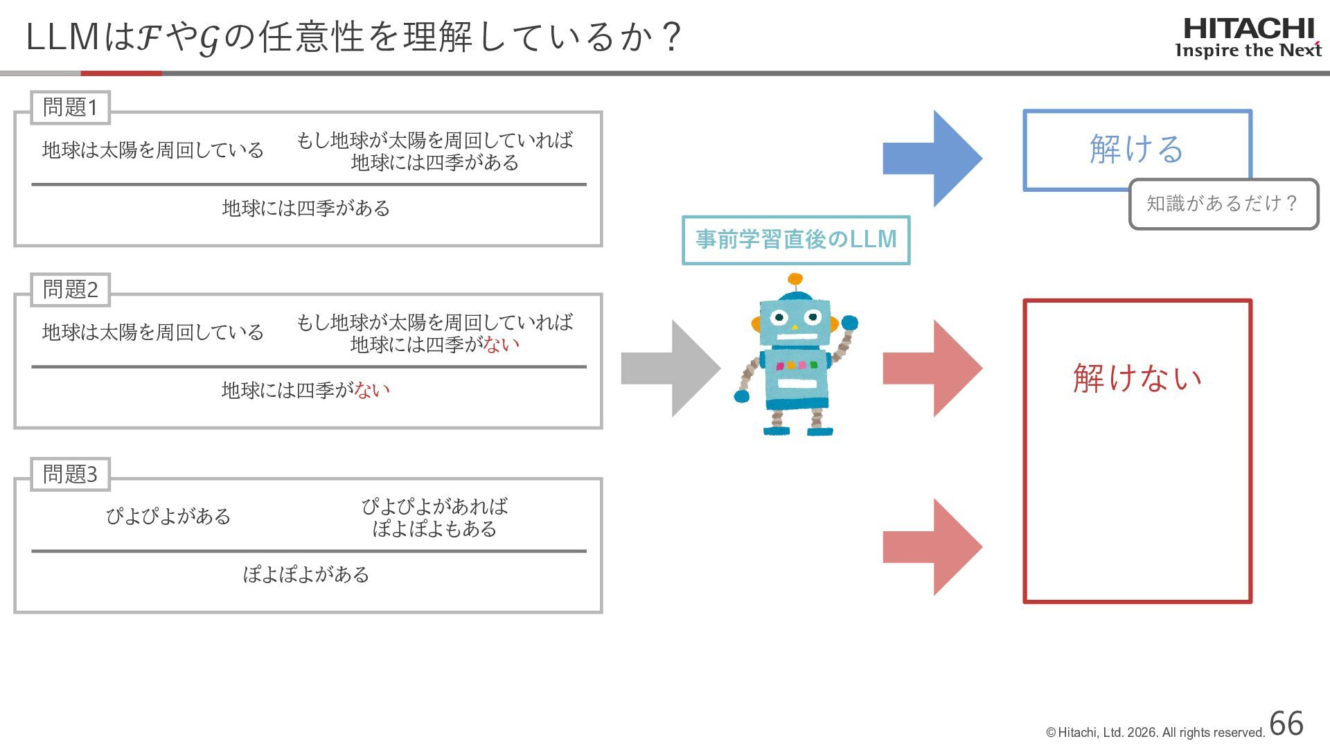 are afraid of wolves. 2. Jessica is a cat. 3. Wolves are afraid of cats. 4. Cats are afraid of sheep. 5. Winona is a wolf. 6. Sheep are afraid of cats. Jessica is afraid of sheep. 1. Rhett is not modest. 2. Vivian is confused. 3. Rhett is lazy. 4. If someone is modest or not confused, then he is not eager. Rhett is confused. (導けない) 1. All eels are fish. 2. No fish are plants. 3. Everything displayed in the collection is either a plant or an animal. 4. All animals displayed in the collection are multicellular. 5. A sea eel is displayed in the collection. 6. The sea eel is an eel or an animal or not a plant. 事実 1. Common utilities include water, electricity, gas, heating, sewer, trash, and recycling. 2. Many apartment rents cover the cost of water and electricity. 3. Susan lives in an apartment where the rent covers all utilities. 4. The rent of the apartment where Ava lives does not cover any utility expenses. 5. Noah lives in an apartment where the rent does not cover heating. 事実 事実 事実 結論 結論 Noah and Ava both need to pay the heating bill. The sea eel is multicellular or is bacteria. 結論 結論 FLD×2により解けるようになった問題 設計指針で意図した能力を獲得 設計指針1: 未知での推論 設計指針3: 公理系の多段推論 設計指針2: 前提不足 設計指針4: 多様な言語表現
