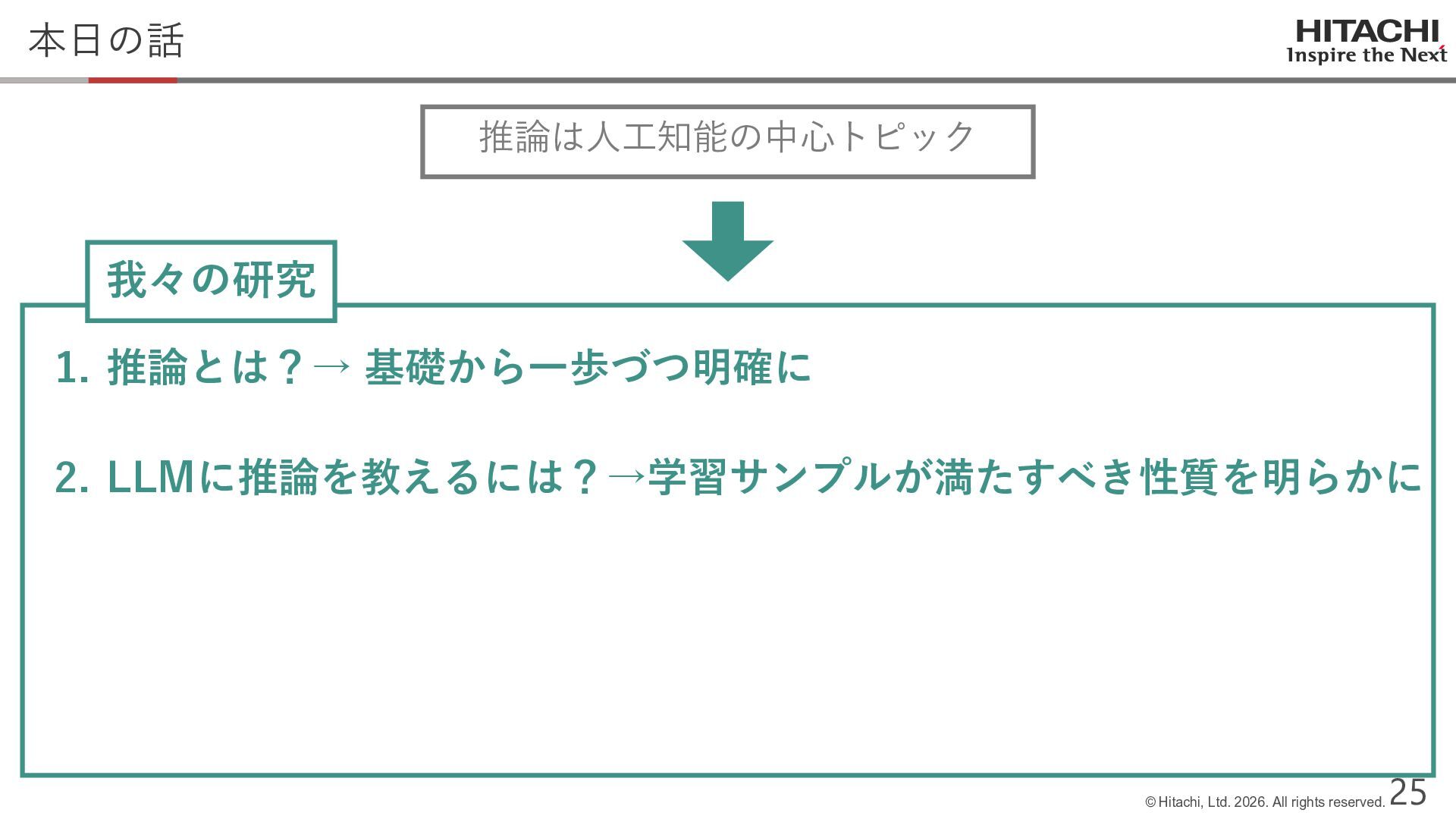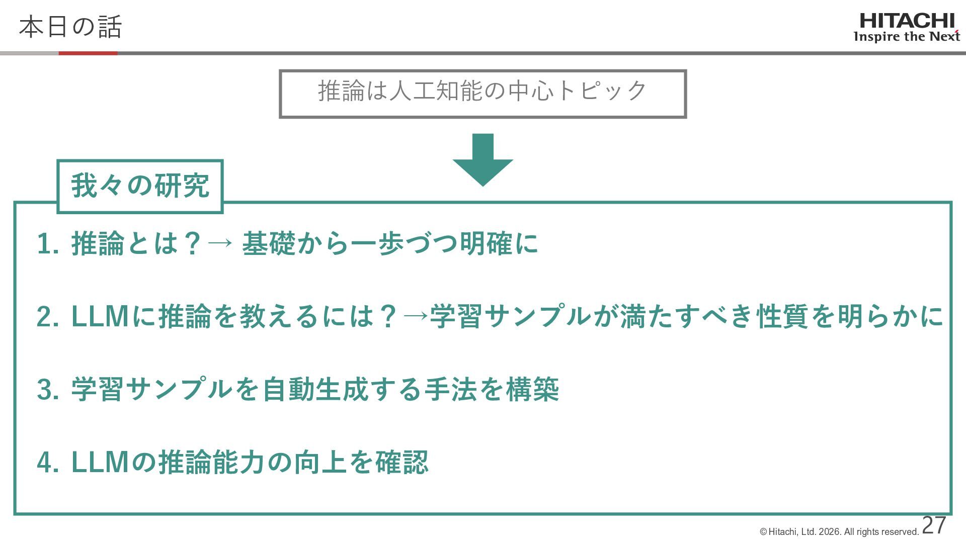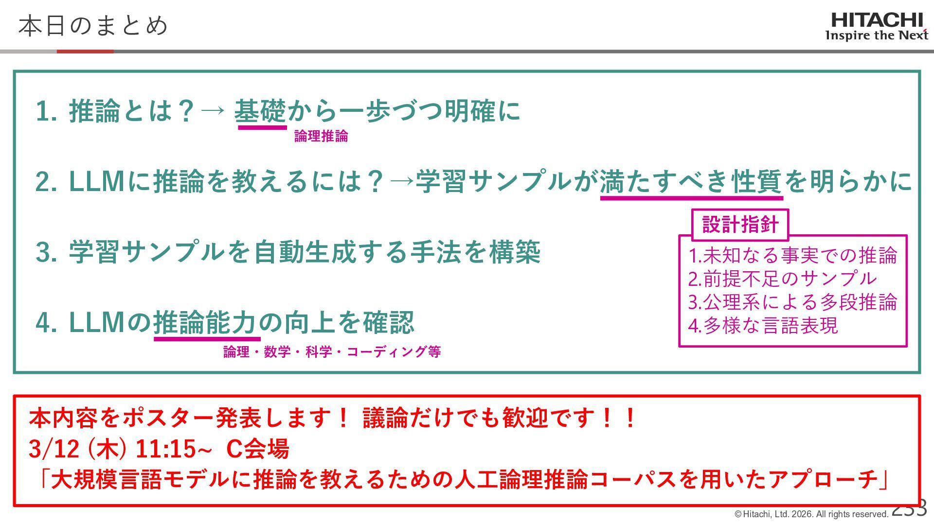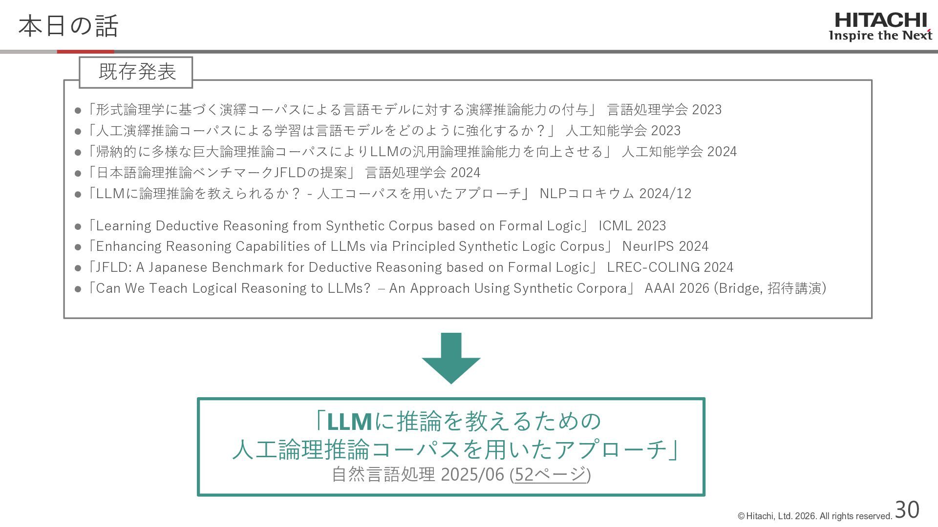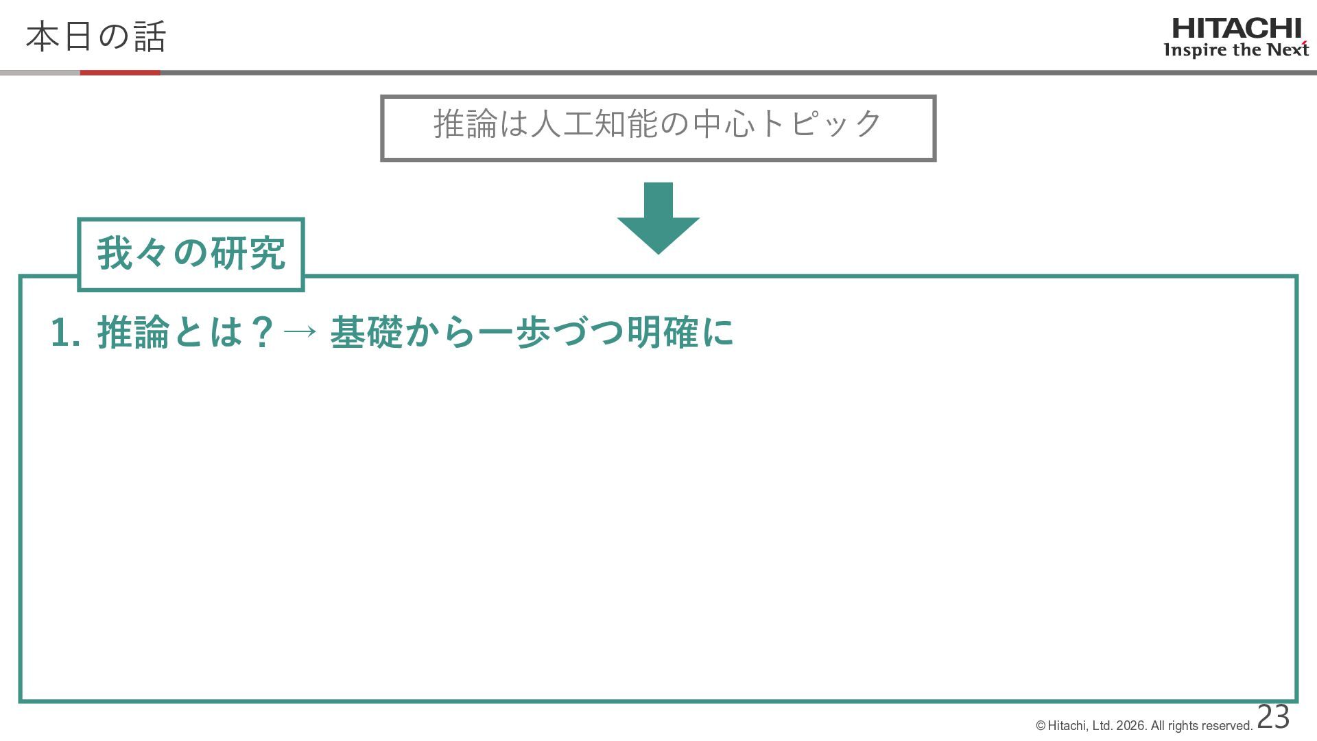are afraid of wolves. 2. Jessica is a cat. 3. Wolves are afraid of cats. 4. Cats are afraid of sheep. 5. Winona is a wolf. 6. Sheep are afraid of cats. Jessica is afraid of sheep. 1. Rhett is not modest. 2. Vivian is confused. 3. Rhett is lazy. 4. If someone is modest or not confused, then he is not eager. Rhett is confused. (導けない) 1. All eels are fish. 2. No fish are plants. 3. Everything displayed in the collection is either a plant or an animal. 4. All animals displayed in the collection are multicellular. 5. A sea eel is displayed in the collection. 6. The sea eel is an eel or an animal or not a plant. 事実 1. Common utilities include water, electricity, gas, heating, sewer, trash, and recycling. 2. Many apartment rents cover the cost of water and electricity. 3. Susan lives in an apartment where the rent covers all utilities. 4. The rent of the apartment where Ava lives does not cover any utility expenses. 5. Noah lives in an apartment where the rent does not cover heating. 事実 事実 事実 結論 結論 Noah and Ava both need to pay the heating bill. The sea eel is multicellular or is bacteria. 結論 結論 FLD×2により解けるようになった問題 設計指針で意図した能力を獲得 設計指針1: 未知での推論 設計指針3: 公理系の多段推論 設計指針2: 前提不足 設計指針4: 多様な言語表現