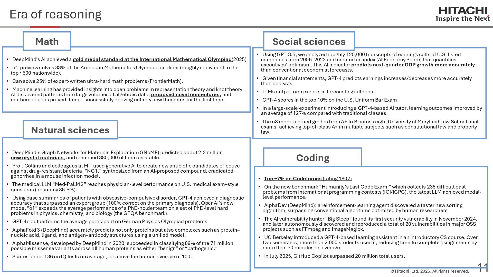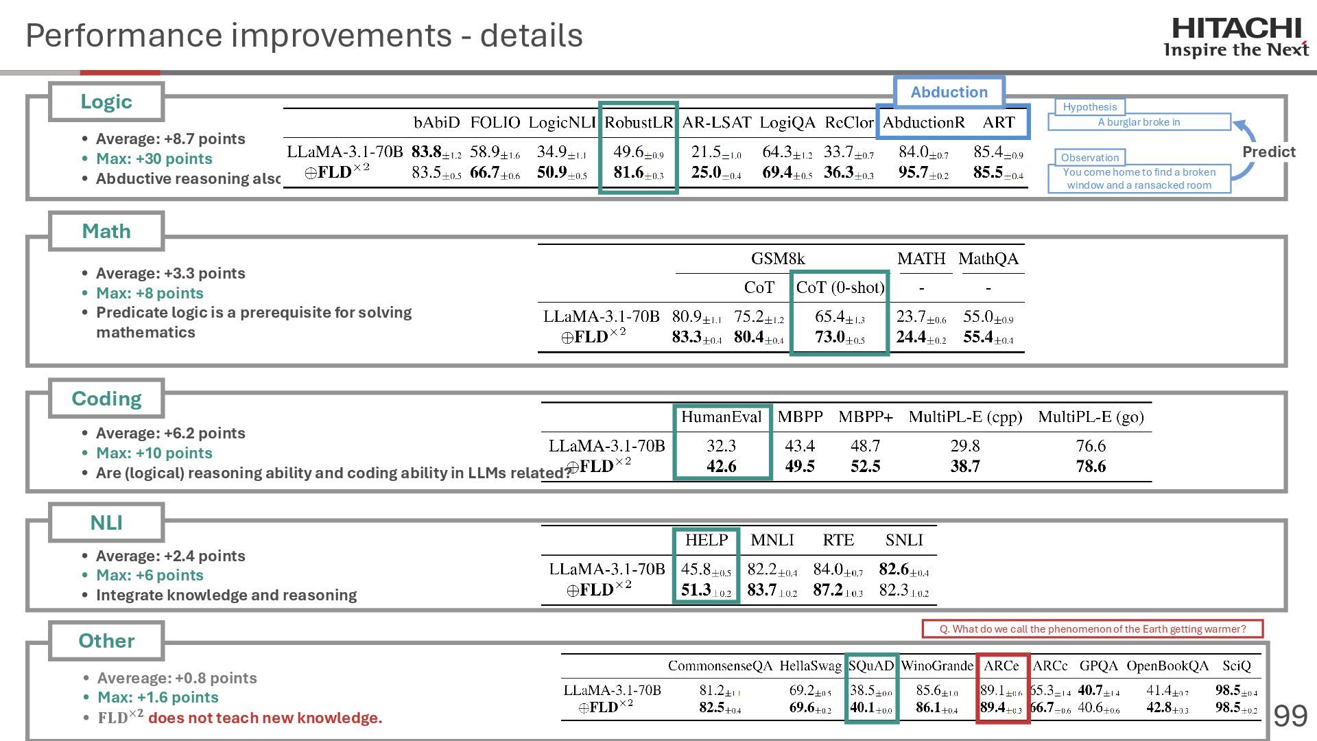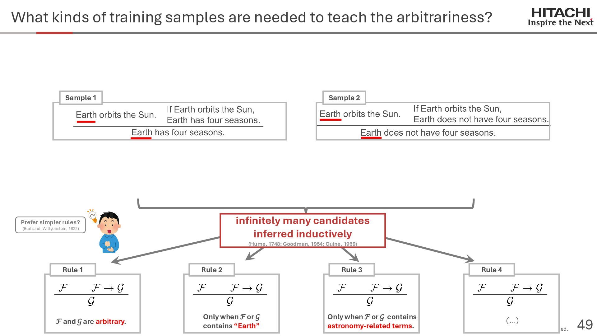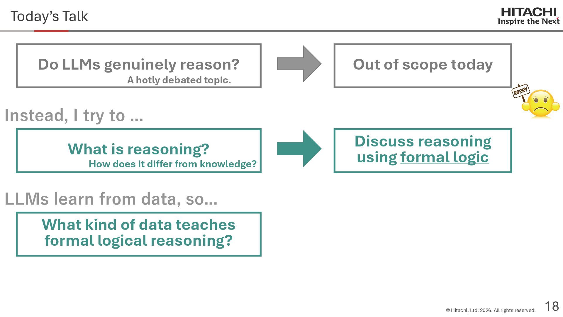 reason? Can Cannot • Score 100 on coding tests from before the knowledge cutoff, but 0 on those after the cutoff (Mitchell, 2023) • They can solve reasoning problems about everyday content, but cannot solve counterfactual reasoning problems. (Dasgupta et al., 2023) Zhao et al. (2024b) Frohberg & Binder (2022) Li et al. (2023) Yu et al. (2023) Jin et al. (2023) Zečević (2024) • They can solve problems with frequent expressions (tokens, variable names, linguistic expressions, etc.) and frequent problem types in the training corpus, but cannot solve those that are not. Jiang et al. (2024ab) Dziri et al. (2023) • Changing the problem representation (language, numbers, formulas) or adding irrelevant information causes performance to degrade significantly. Mirzadeh (2024) (Razeghi et al., 2022) Zhang et al., 2024; Srivastava et al. (2024); Shi et al. (2023) • Can solve Problems A and B independently, but not the combined problem (Arian Hosseini, 2024) • Performance drops significantly when the order of premise facts is changed (Chen et al., 2024) • Initial reasoning chains are selected via lexical overlap in premises and questions (Aoki et al., 2024) • Solved using a collection of (non-essential) heuristics rather than mathematical rules (Nikankin et al., 2024) • Human-like error patterns in syllogistic reasoning. Ando et al. (2023); Ozeki et al. (2024); Bertolazzi et al. (2024); Eisape et al. (2024) • On expert-written math problems, o1-preview achieves less than 1% accuracy (Glazer1 et al., 2024) • Fails to solve puzzles about rare/endangered languages (Bean et al., 2024) memorization content bias brittleness Heuristics • o1-preview solves 83% of the American Mathematics Olympiad qualifier; it can also solve unseen problems. • It also works for science, coding, and Kaggle! (OpenAI 2024), (Li et al., 2024) • Can solve 25% of expert-written ultra-hard math problems. • Scores about 136 on IQ tests on average, far above the human average of 100. • Grokking occurs via implicit reasoning (Wang et al., 2024). • Memorization and generalization can coexist (Xie et al., 2024) • For factual questions, they refer only to knowledge obtained from similar samples; for reasoning questions, they refer to a variety of samples (Ruis, 2024) • As LLMs scale up, memorization of a small number of samples increases for factual questions, but not necessarily for reasoning questions (Wang et al., 2024). More advanced Problem