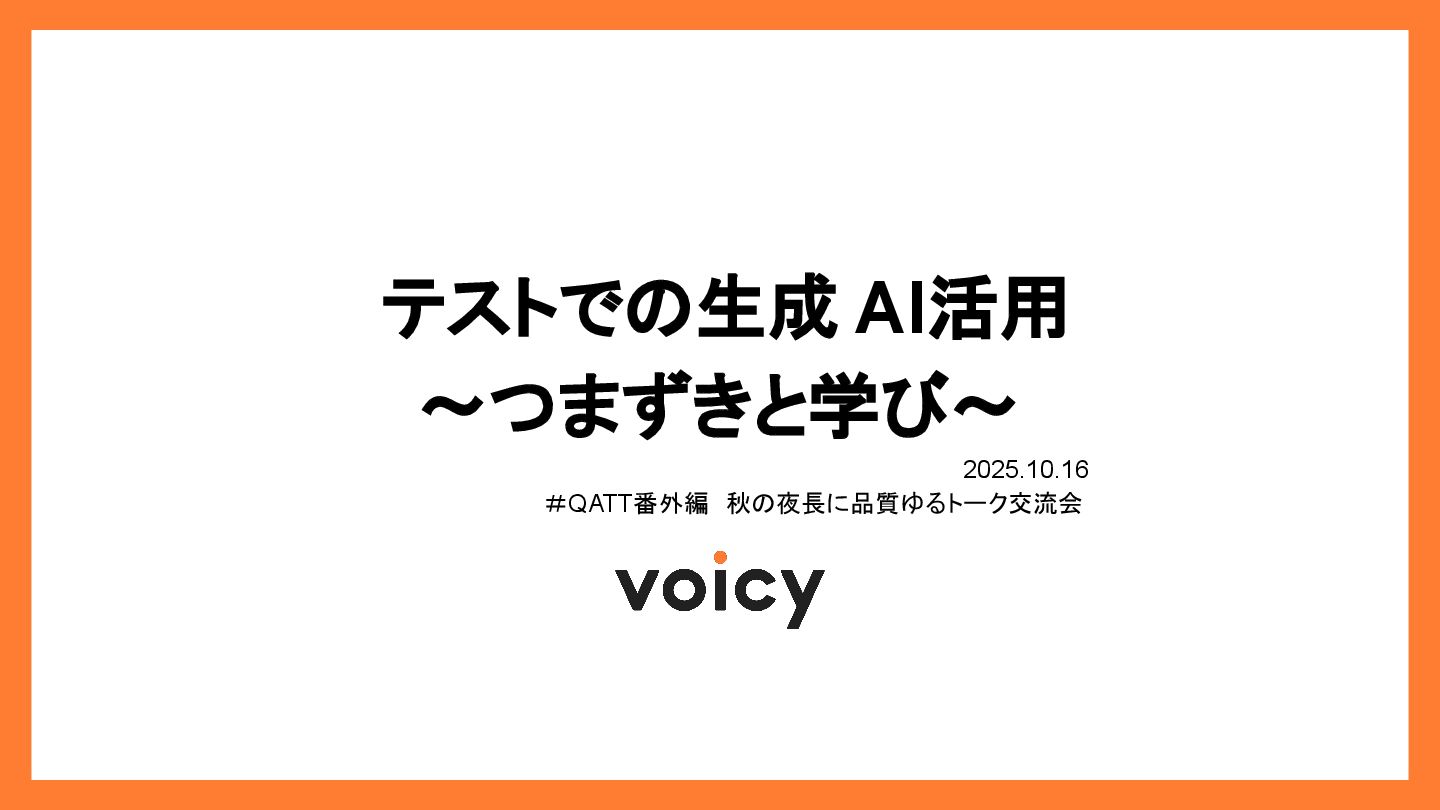 2025年10月16日 #QATT番外編 秋の夜長に品質ゆるトーク交流会 でのLT登壇資料です。