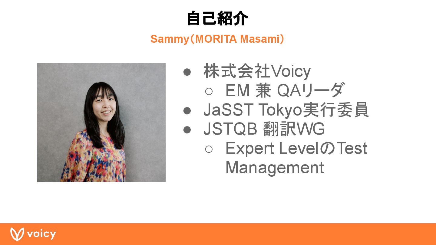 自己紹介 Sammy(MORITA Masami) • 株式会社Voicy ◦ EM 兼 QAリーダ •