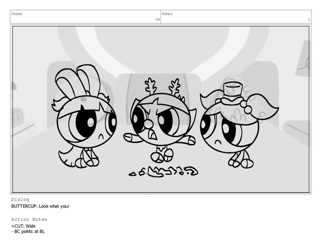 Scene 59 Panel 3 Dialog BUTTERCUP: did Blossom Action Notes