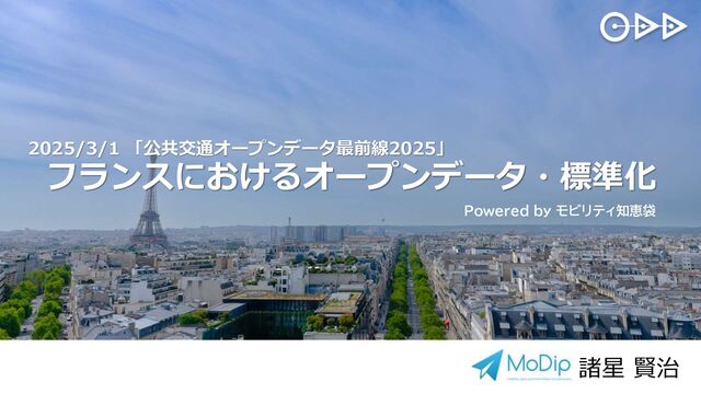 諸星 賢治 2025/3/1 「公共交通オープンデータ最前線2025」 フランスにおけるオープンデータ・標準化 Powered by モビリティ知恵袋