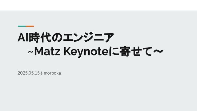 AI時代のエンジニア ~Matz Keynoteに寄せて〜 2025.05.15 t-morooka