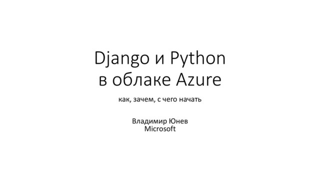 В докладе будут рассмотрены возможности, которые предлагает публичное облако Microsoft Azure для размещения проектов на Python и Django, как в рамках PaaS модели, так в рамках настройки виртуальных машин и собственной инфраструктуры на базе Linux (IaaS-модель). Речь также пойдет о плюсах и минусах облачного размещения проектов.