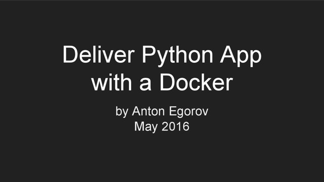 DevOps инженер в компании Островок.ру • 10 лет в индустрии веб-разработки из них 5 лет в Островке • Основной язык разработки – Python • Опыт работы с Докером – 2 года • Докеризировал около 50 прод-приложений, из них 80% были на Python • В Островке ответственный за кучу терабайт фоток и географию, а также за докеризацию приложений и подготовку их к выкладке в продакшен 2