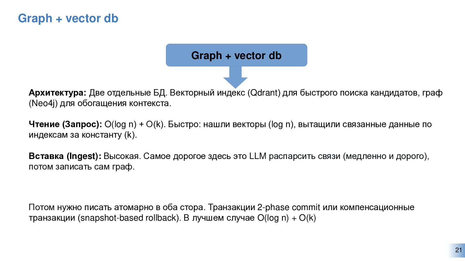 Будут рассмотрены ключевые архитектурные вызовы при проектировании систем на основе AI-агентов и mcp серверов, а также роль фреймворков вроде LangChain и LangGraph в этом контексте. Далее глубоко разберем, чем отличаются популярные векторные базы данных, когда какую выбрать, и как работают их внутренние механизмы — HNSW, IVF, similarity, сегментация и лайфхаки "приготовления" рага.