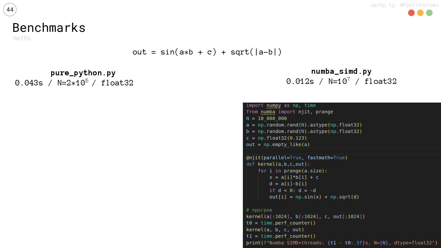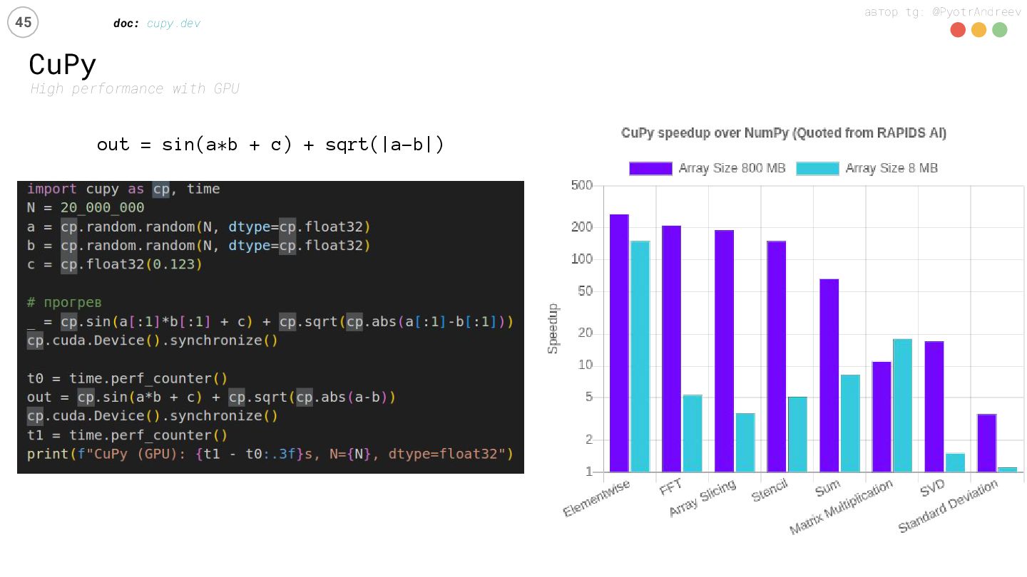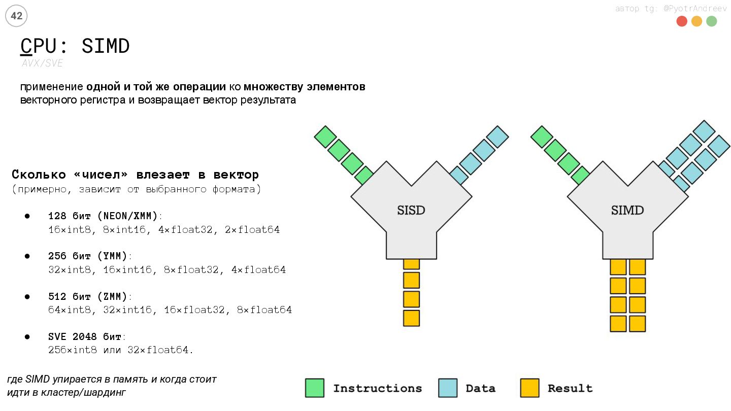 Python в 2025-м — уже не «скрипт», а инструмент, который жмёт на железо: AVX-512/SVE, Tensor Cores, NVLink/NVSwitch, HBM. Но где хватит CPU-SIMD и горизонтального масштабирования, а где GPU окупает TCO? На живых бенчмарках сравним NumPy2 (SIMD), Numba, и GPU-стек.
