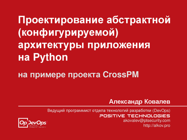 Видео: http://www.moscowpython.ru/meetup/43/proektirovanie-abstraktnoj-konfiguriruemoj-arhitek/