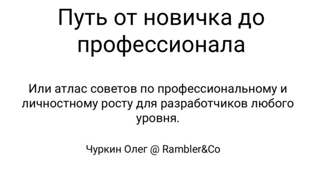 "Рассказ о том, как разработчику спланировать свой профессиональный рост: как развиваться технически и личностно, как правильно принимать важные карьерные решения и какие качества и умения сейчас ждут работодатели от действительно классных специалистов.".