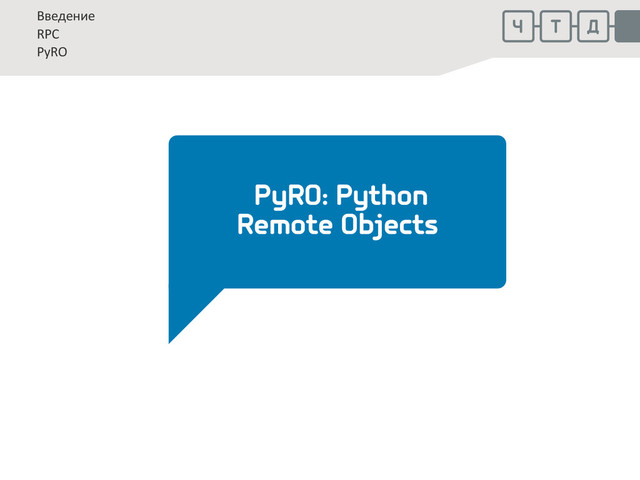 В докладе автор расскажет про библиотеку PyRO, с помощью которой можно создавать распределенные приложения. В таких приложениях объекты могут через сеть вызывать удаленные методы друг друга.