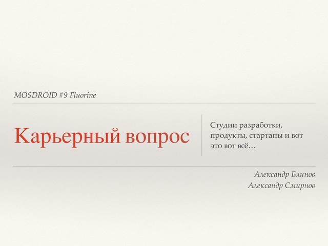 Александр Блинов @ HeadHunter + Александр Смирнов @ PapaJobs – MOSDROID #9 Flourine – Видео https://youtu.be/4T3q5qXwhgY?t=2h42m47s