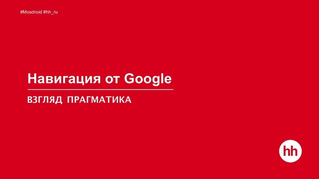 Что мы вообще хотим от фреймворка для навигации? Как устроено решение Google изнутри? Закрыт ли вопрос навигации навсегда? В своем докладе я постараюсь ответить на эти и другие насущные вопросы.