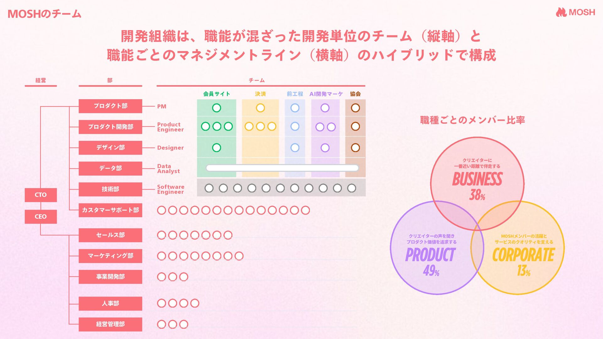 非連続な事業成長のためのあらゆる意思決定、経営シ ステムの導入、対外的なプレゼンス向上、クリティカ ルなリソースの調達などを実行し、企業価値の最大化 を牽引することができる 1200~ 1300~ ◦ 求心力をもって経営チームをリードすることができる ◦ 中長期で発展を遂げていくための経営システム及び経営体制に ついて思考・推進できる ◦ 様々な内部・外部環境を考慮しながら2-3 年単位での戦略策定及 び組織設計ができる ◦ 事業PL に責任を持ち、経営やステークホルダーを巻き込んだ精 度の高い意思決定及びその達成を牽引できる ◦ 管掌部門の半年〜年単位の戦略を策定できる ◦ 経営戦略に基づいた、チームの組成及びミッション設定を行う ことができる ◦ 課題を適切に捉えながらクォーター単位のチーム戦略を策定 し、KPI ・重要アクションを設定できる ◦ チームの目標達成に責任を持ち、達成に向けたさまざまなプロ セスを牽引できる 全社の事業成長のためのあらゆる意思決定、オペレー ションを遂行し、企業価値最大化に貢献できる 1000~1700 1000~2000 800~1100 800~1800 600~900 700~1300 全社視点を持ちながら自身の管掌領域全体の戦略を描 くとともに、その成果を自らが牽引することで全社に 大きな影響力を及ぼす課題解決を推進できる 所属チームの成果を牽引するとともに、所属Divsion 全体などチームを越境した課題解決に対しても影響力 を発揮することができる ・ ・ ・ 経営 部 (経営をフォロー) チーム