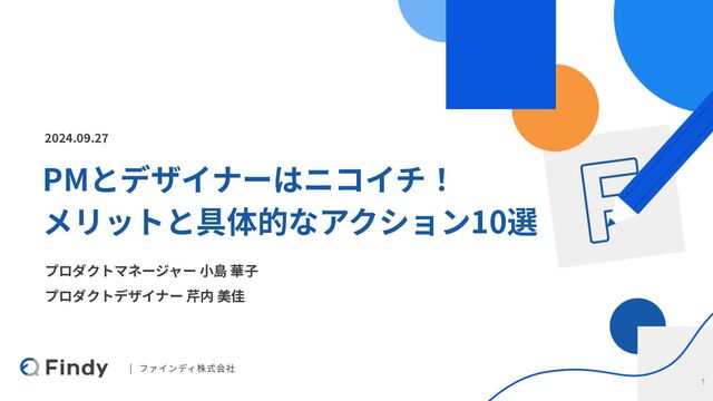 © Findy Inc. 2024.09.27 PMとデザイナーはニコイチ! メリットと具体的なアクション10選 1 プロダクトマネージャー ⼩島 華⼦