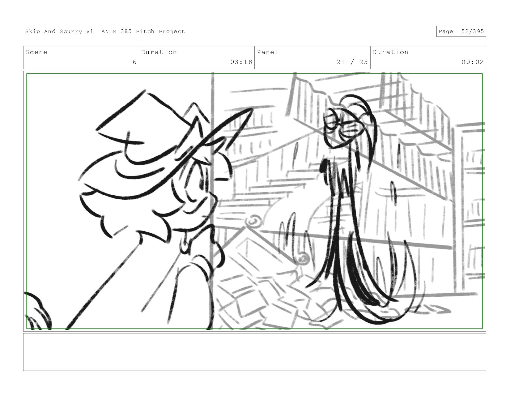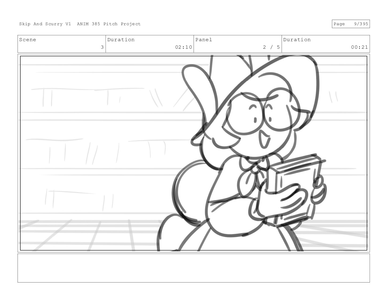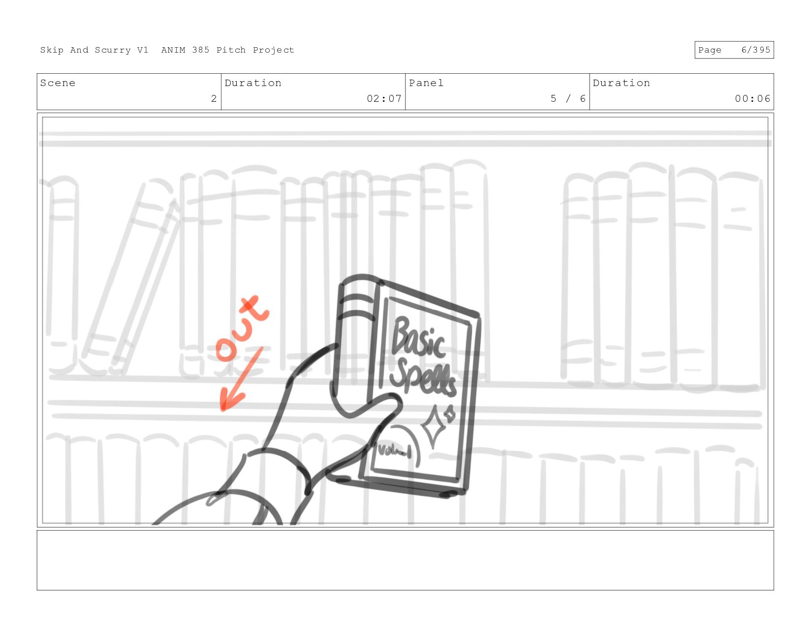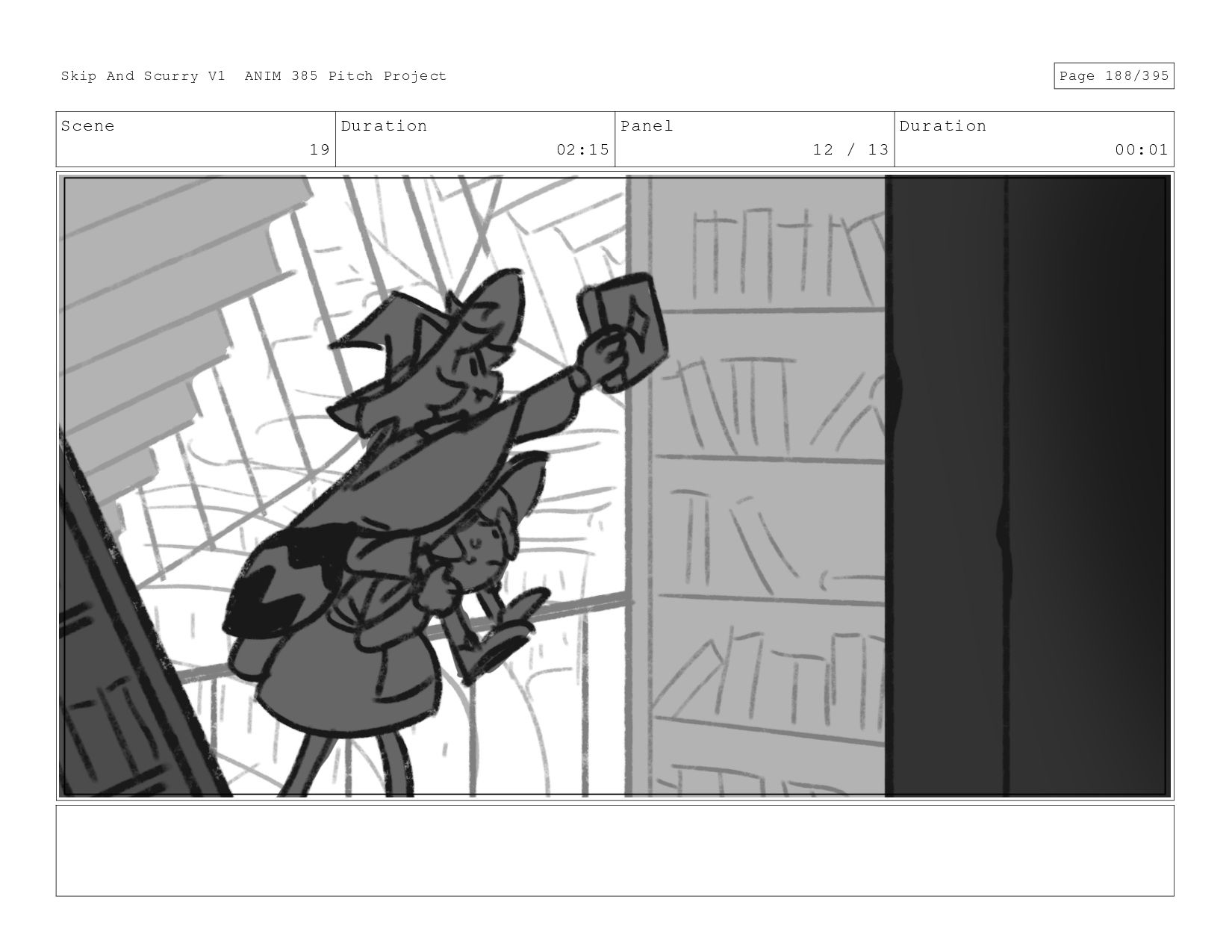 Dialog Scurry: But why do that when we have a whole library to explore, full of all sorts of unique spellbooks? Skip And Scurry V1 ANIM 385 Pitch Project Page 112/395