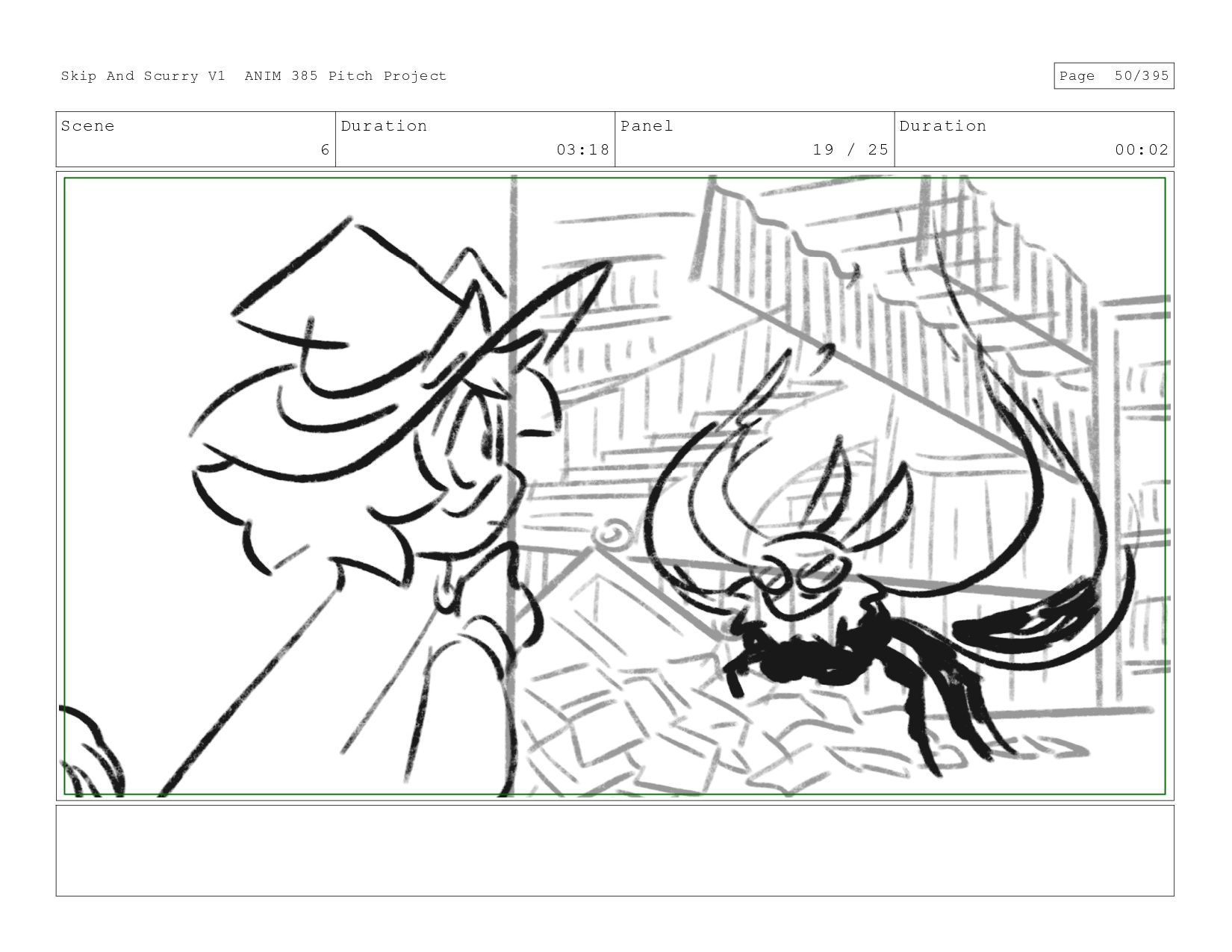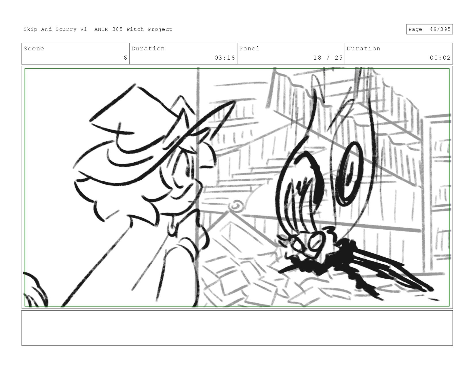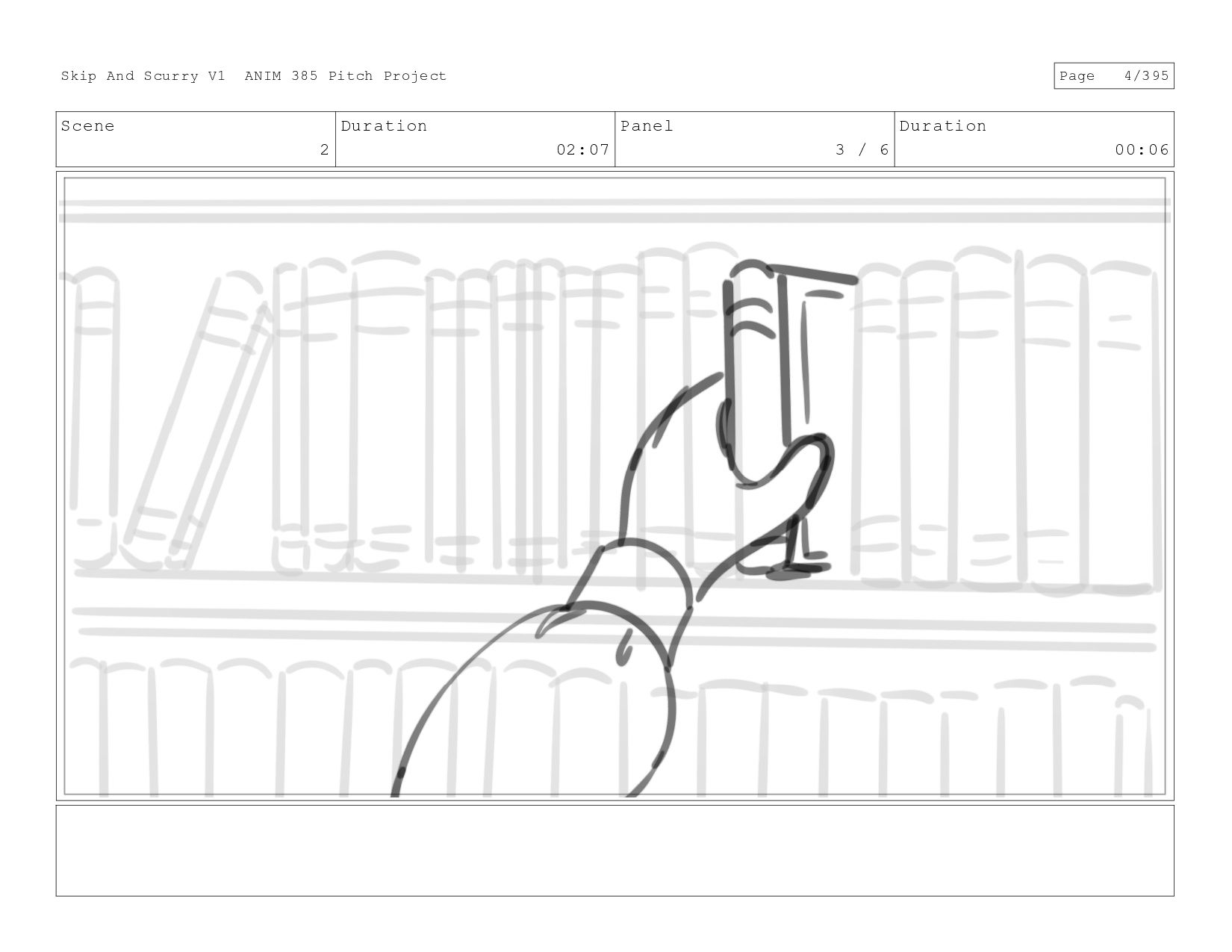 Dialog Scurry: But why do that when we have a whole library to explore, full of all sorts of unique spellbooks? Skip And Scurry V1 ANIM 385 Pitch Project Page 113/395