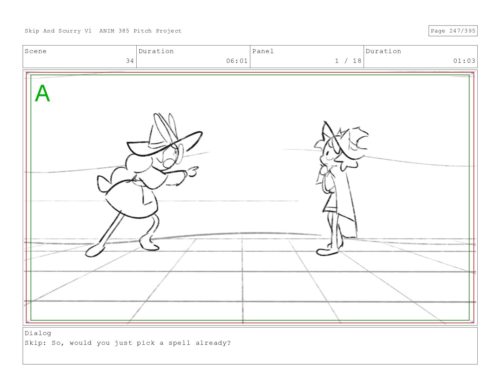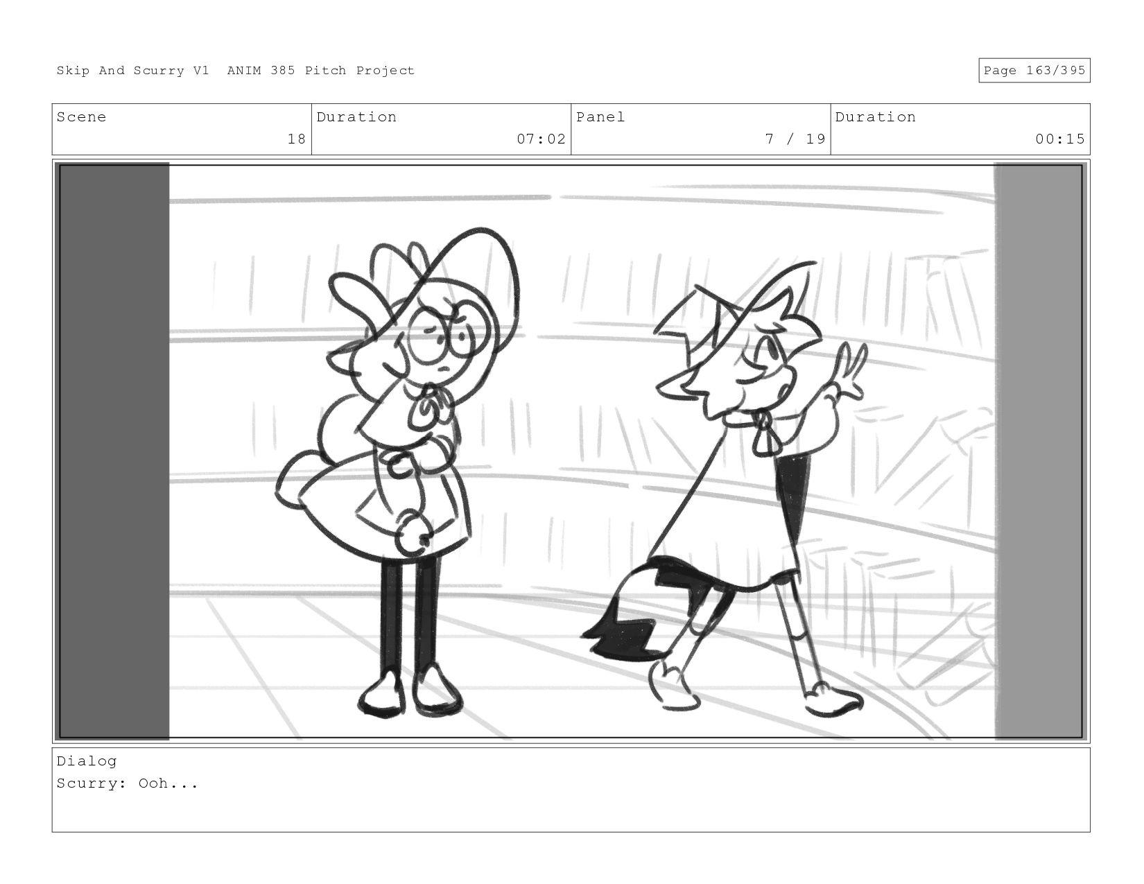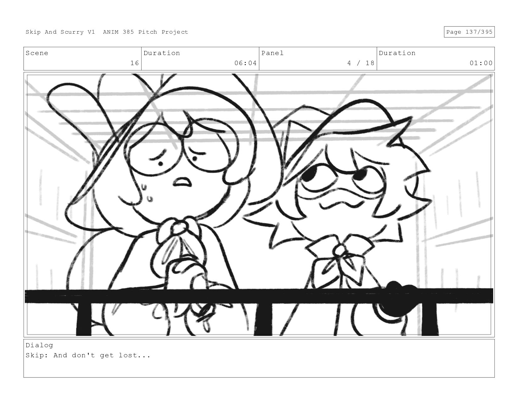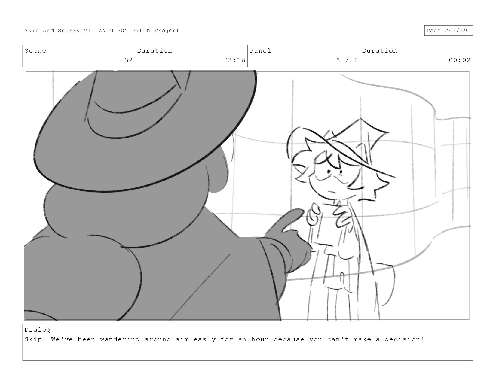 Dialog Skip: We've been wandering around aimlessly for an hour because you can't make a decision! Skip And Scurry V1 ANIM 385 Pitch Project Page 243/395