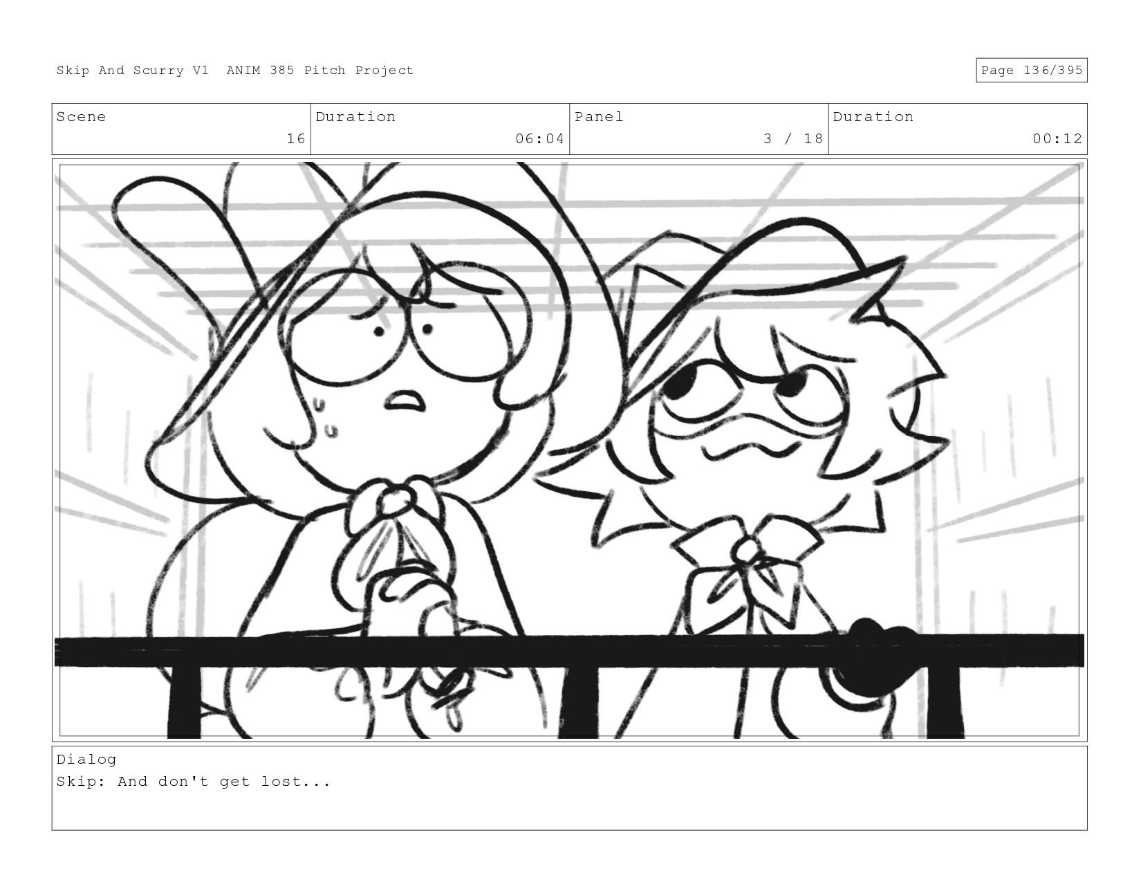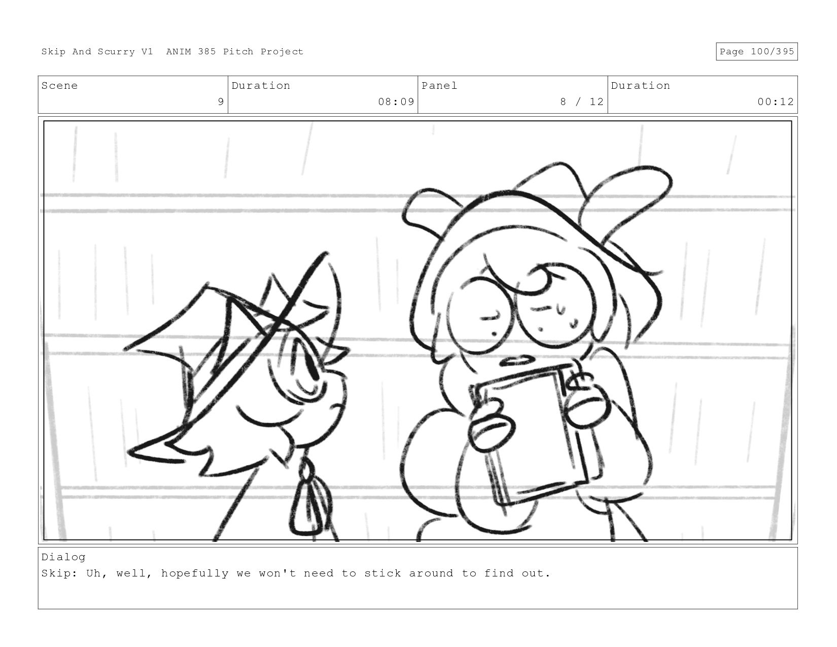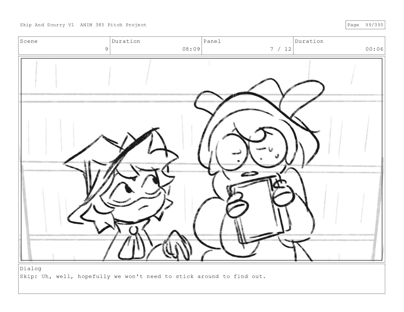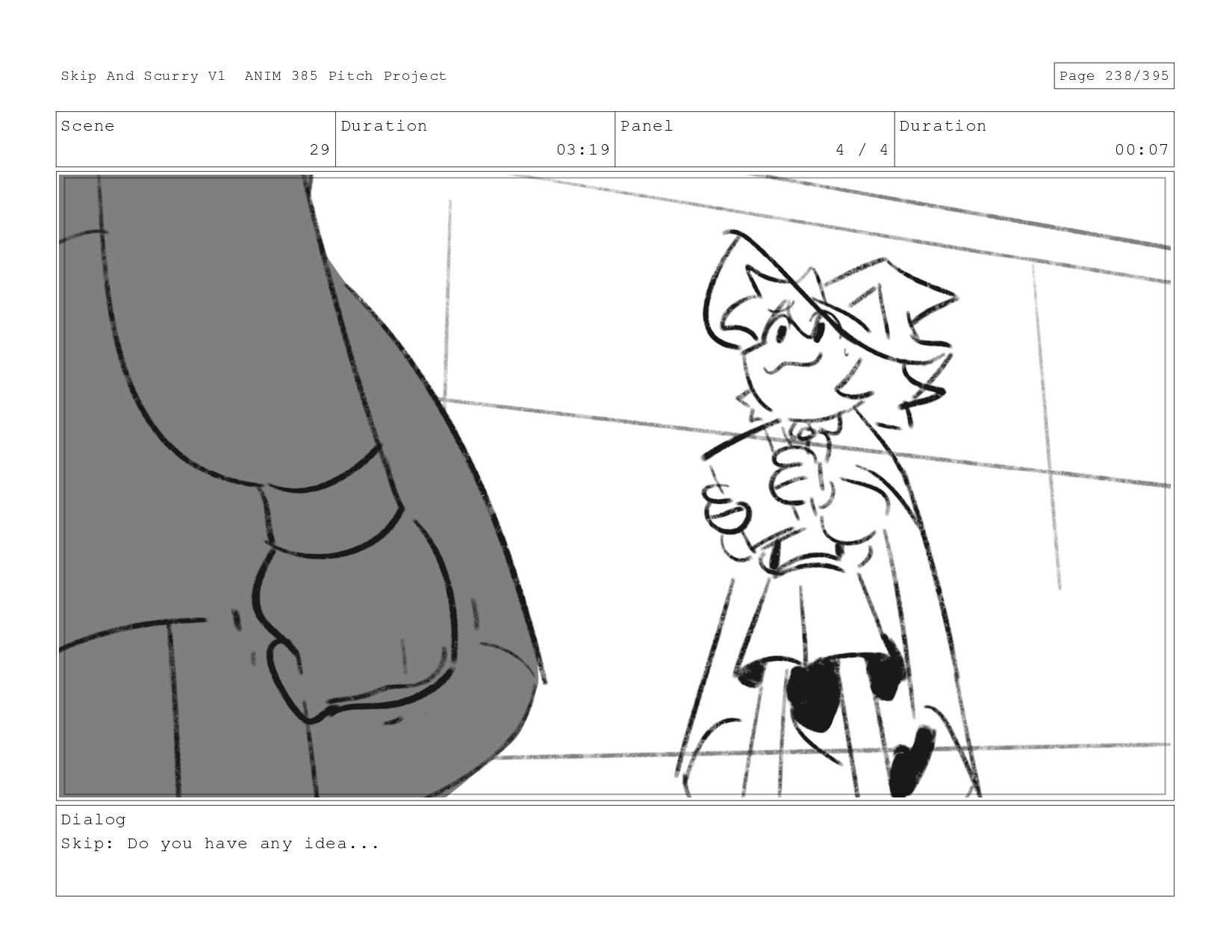 Dialog Skip: We've been wandering around aimlessly for an hour because you can't make a decision! Skip And Scurry V1 ANIM 385 Pitch Project Page 243/395