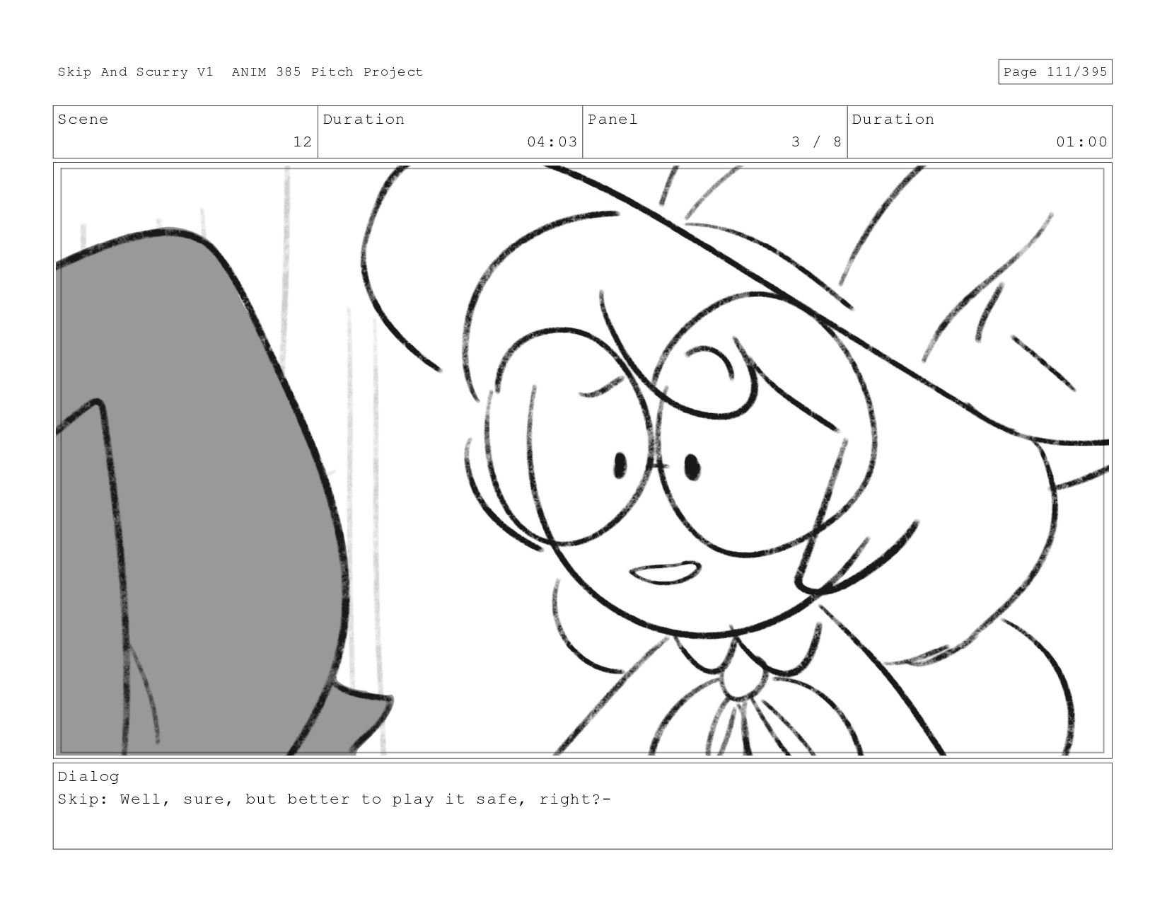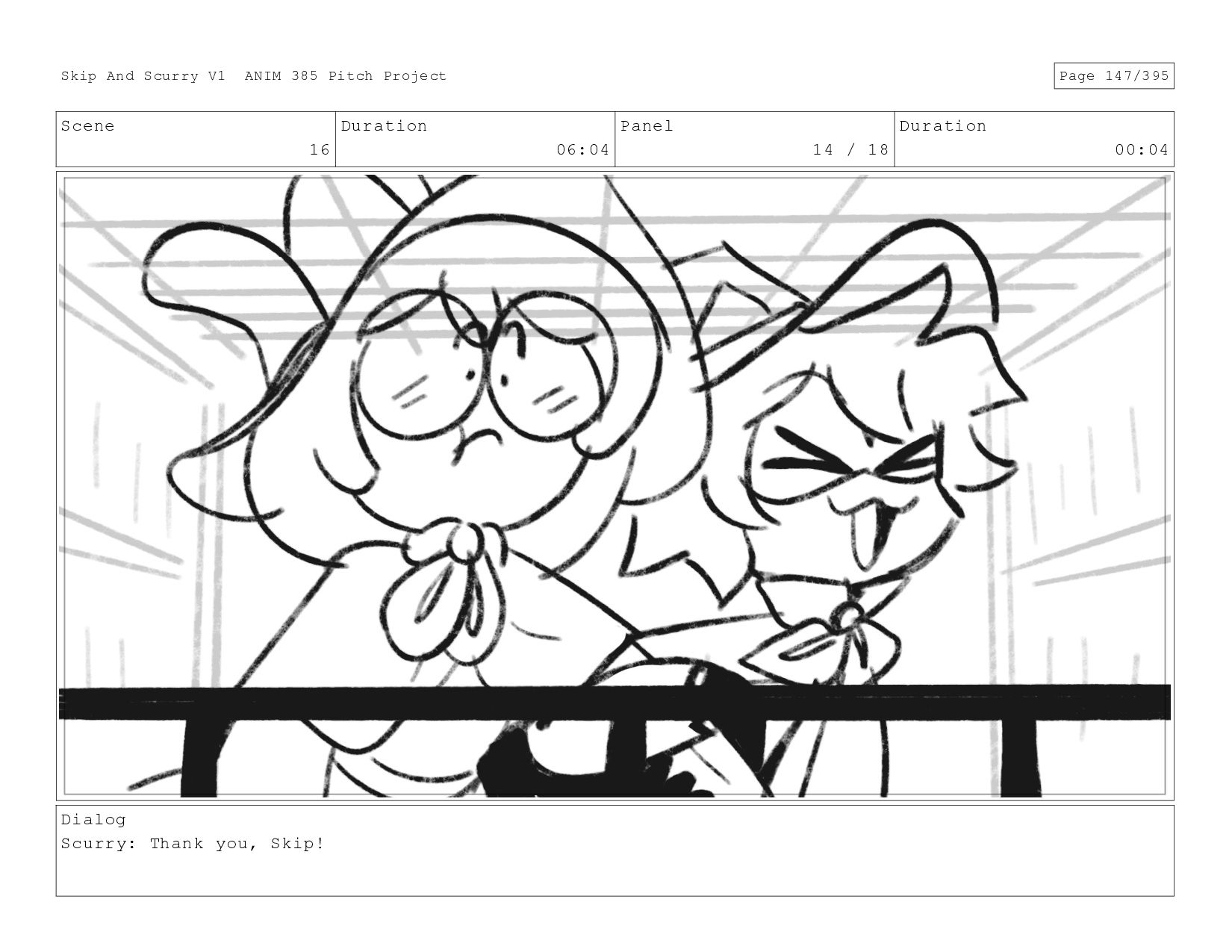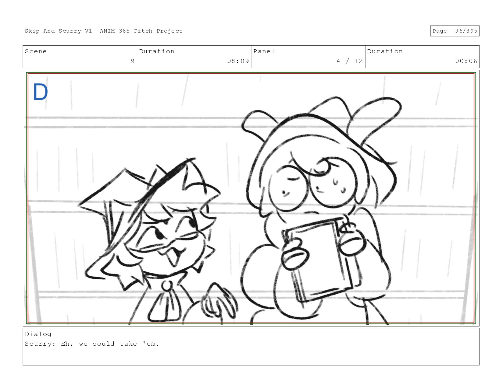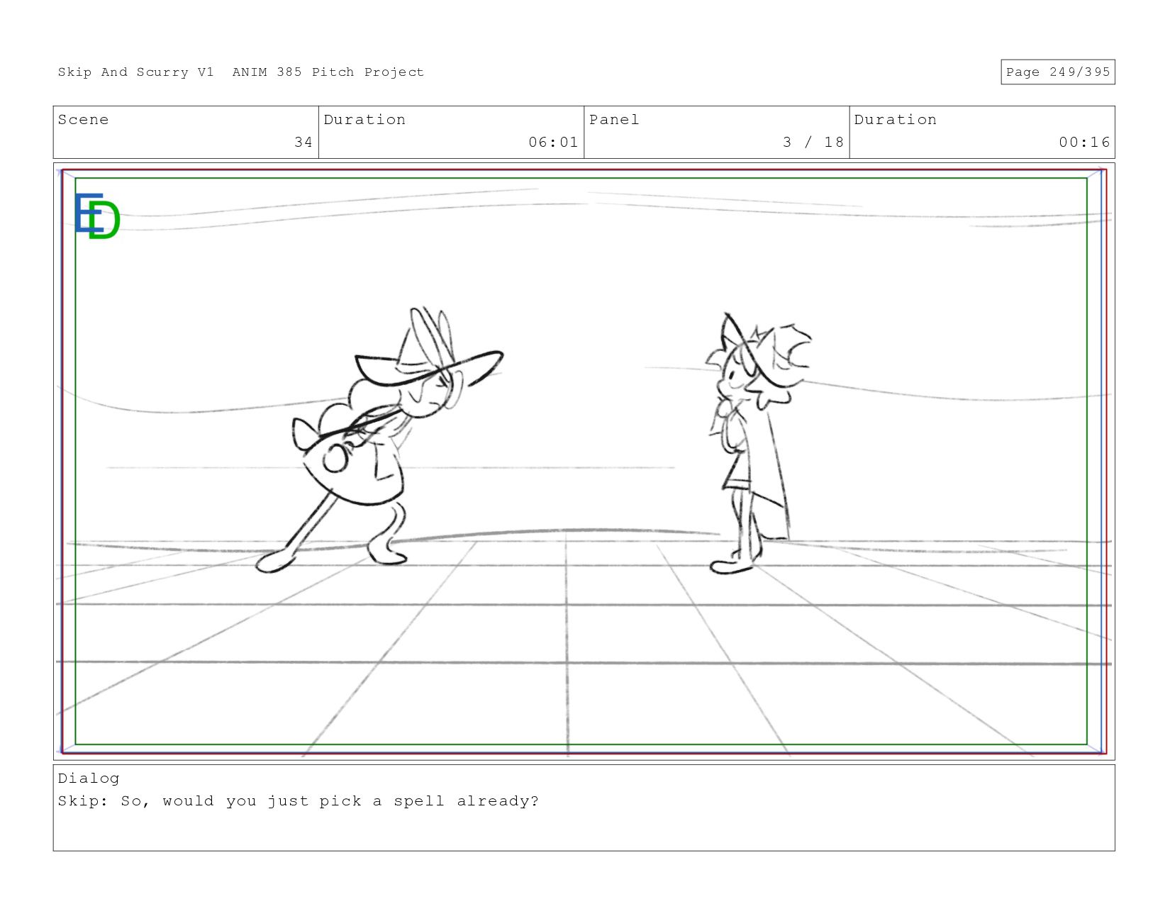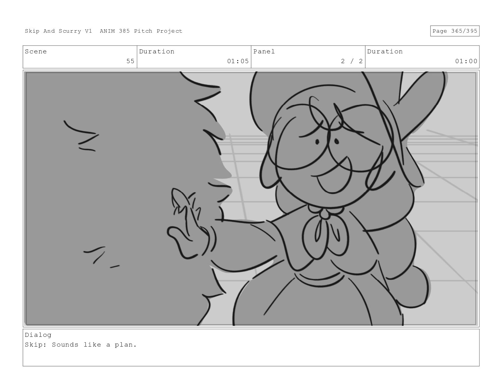 Dialog Skip: We've been wandering around aimlessly for an hour because you can't make a decision! Skip And Scurry V1 ANIM 385 Pitch Project Page 243/395