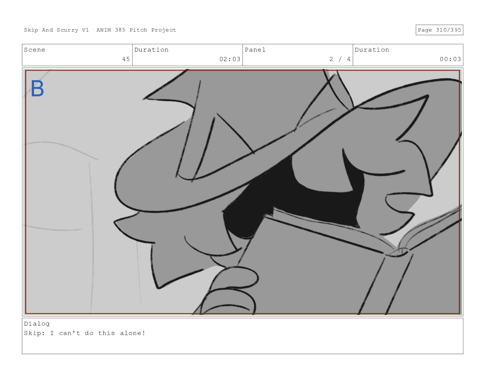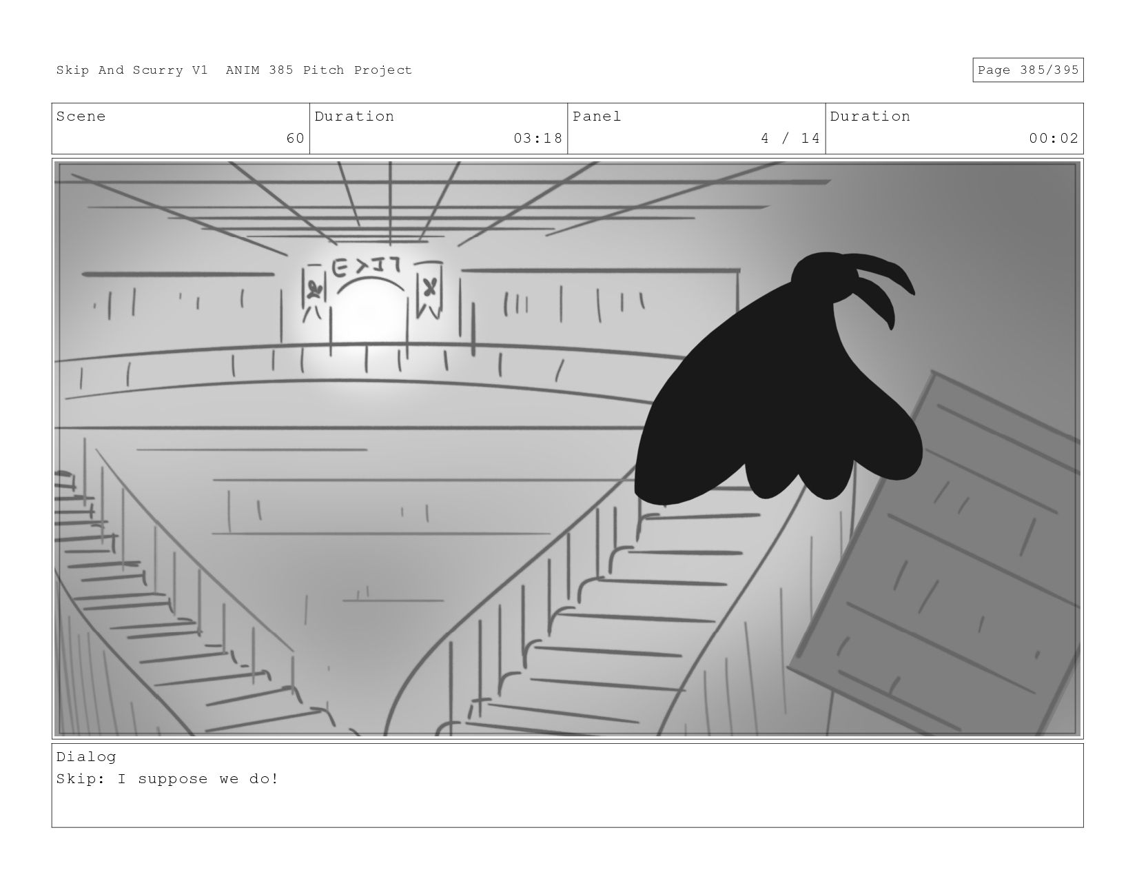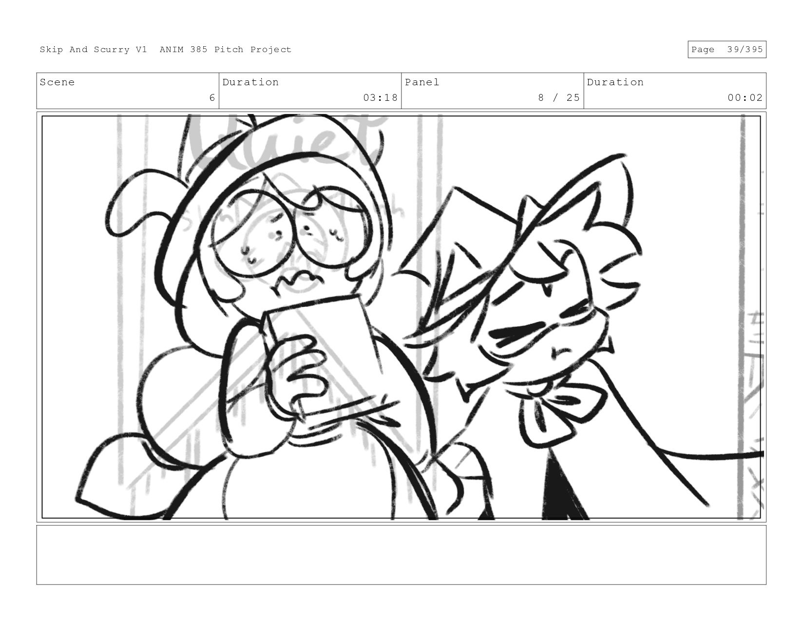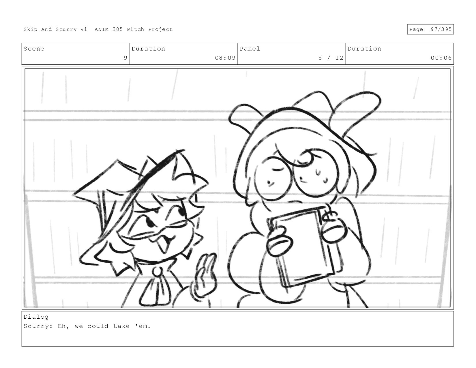 Dialog Skip: We've been wandering around aimlessly for an hour because you can't make a decision! Skip And Scurry V1 ANIM 385 Pitch Project Page 243/395