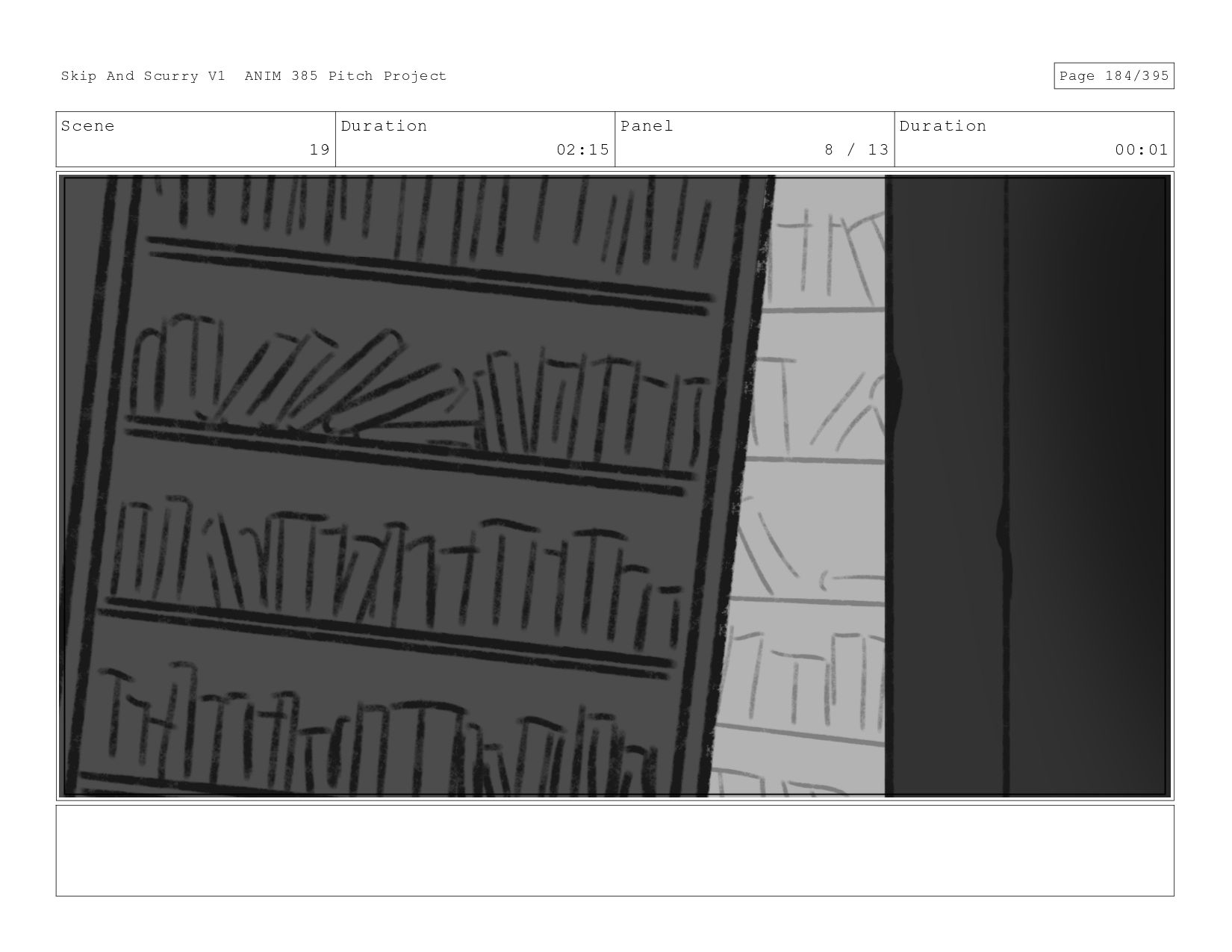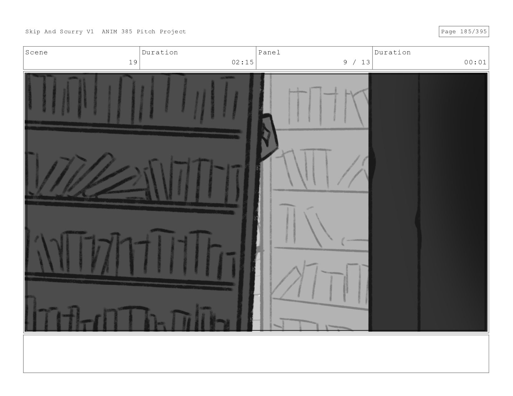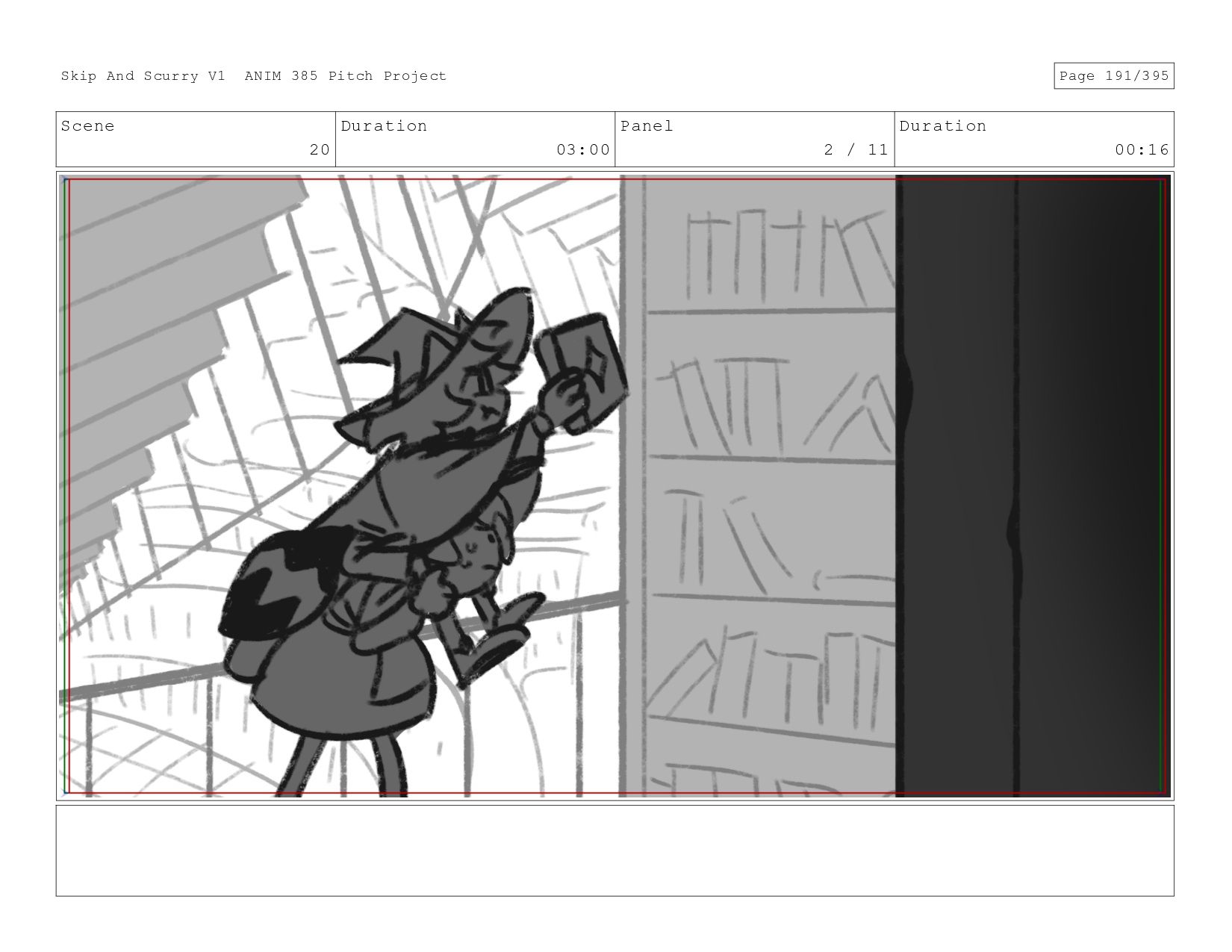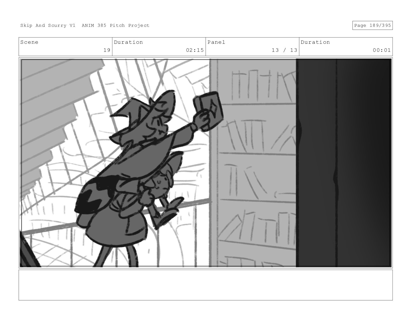 Dialog Scurry: But why do that when we have a whole library to explore, full of all sorts of unique spellbooks? Skip And Scurry V1 ANIM 385 Pitch Project Page 120/395