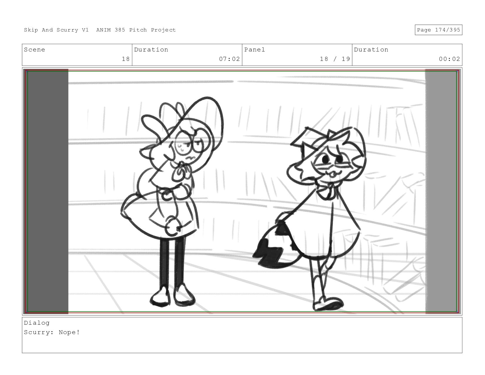 Dialog Skip: We've been wandering around aimlessly for an hour because you can't make a decision! Skip And Scurry V1 ANIM 385 Pitch Project Page 246/395