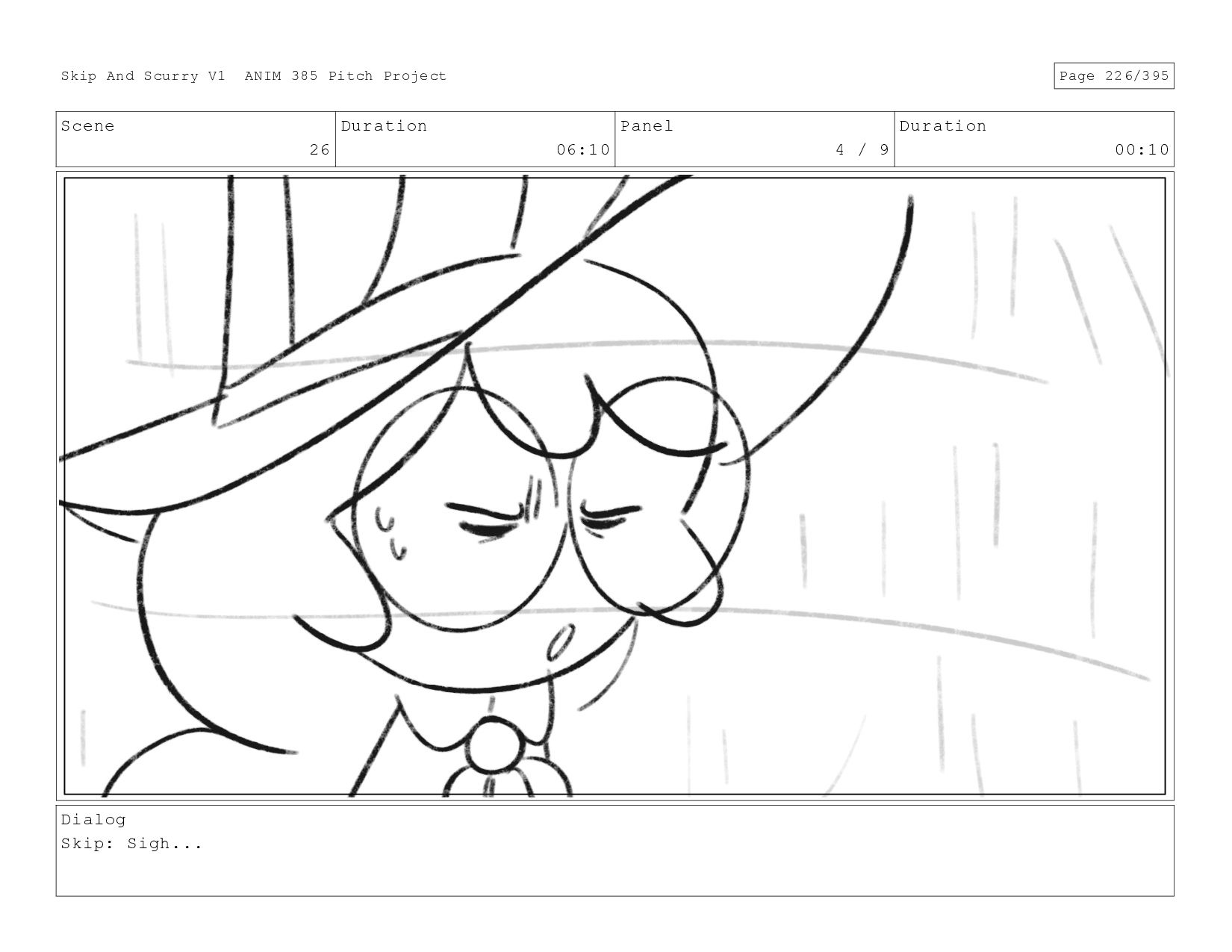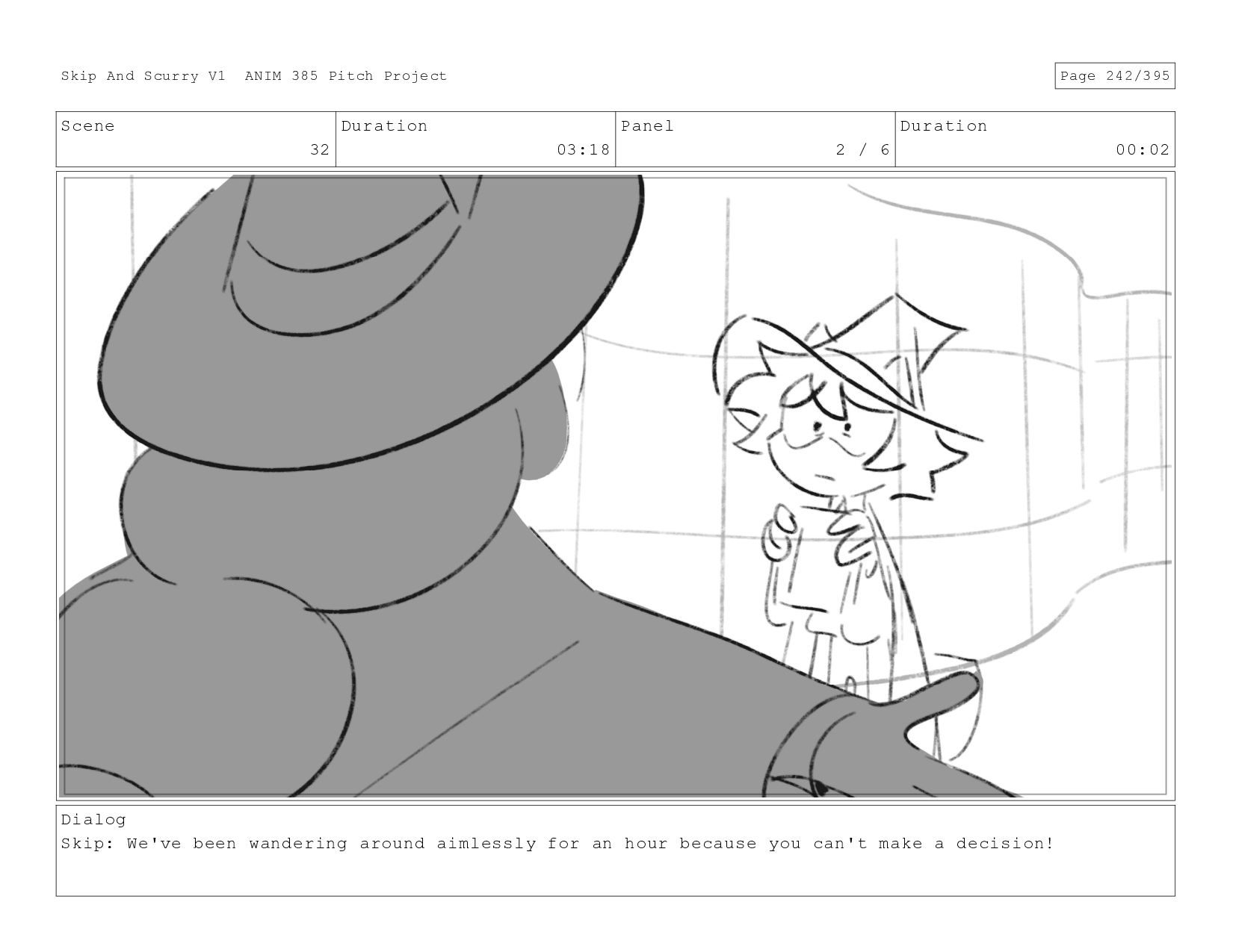 Dialog Skip: We've been wandering around aimlessly for an hour because you can't make a decision! Skip And Scurry V1 ANIM 385 Pitch Project Page 242/395