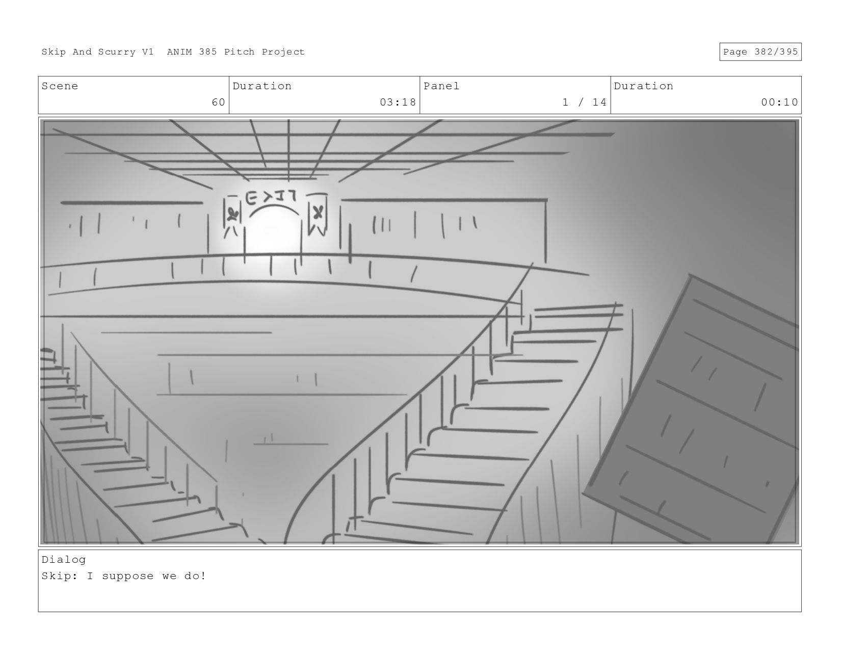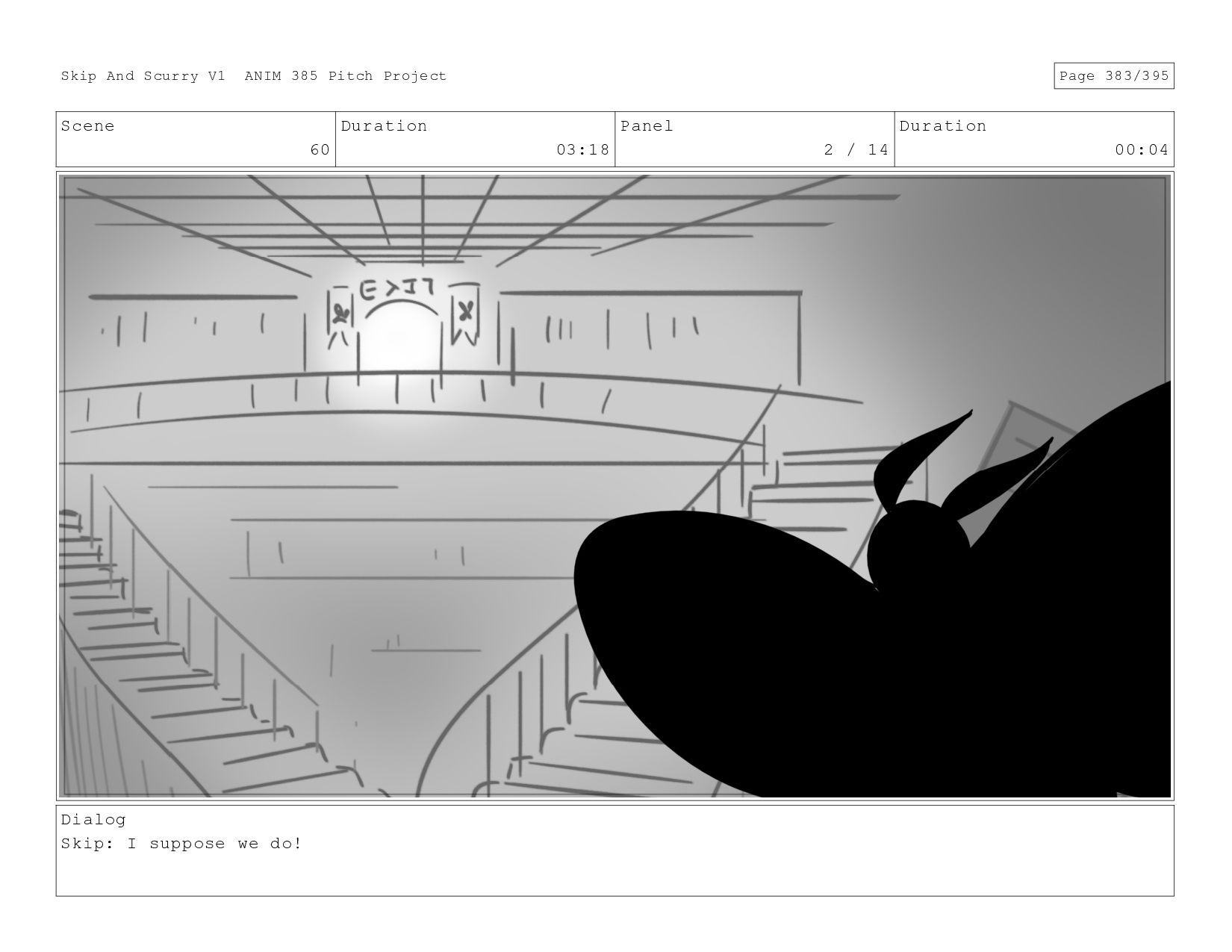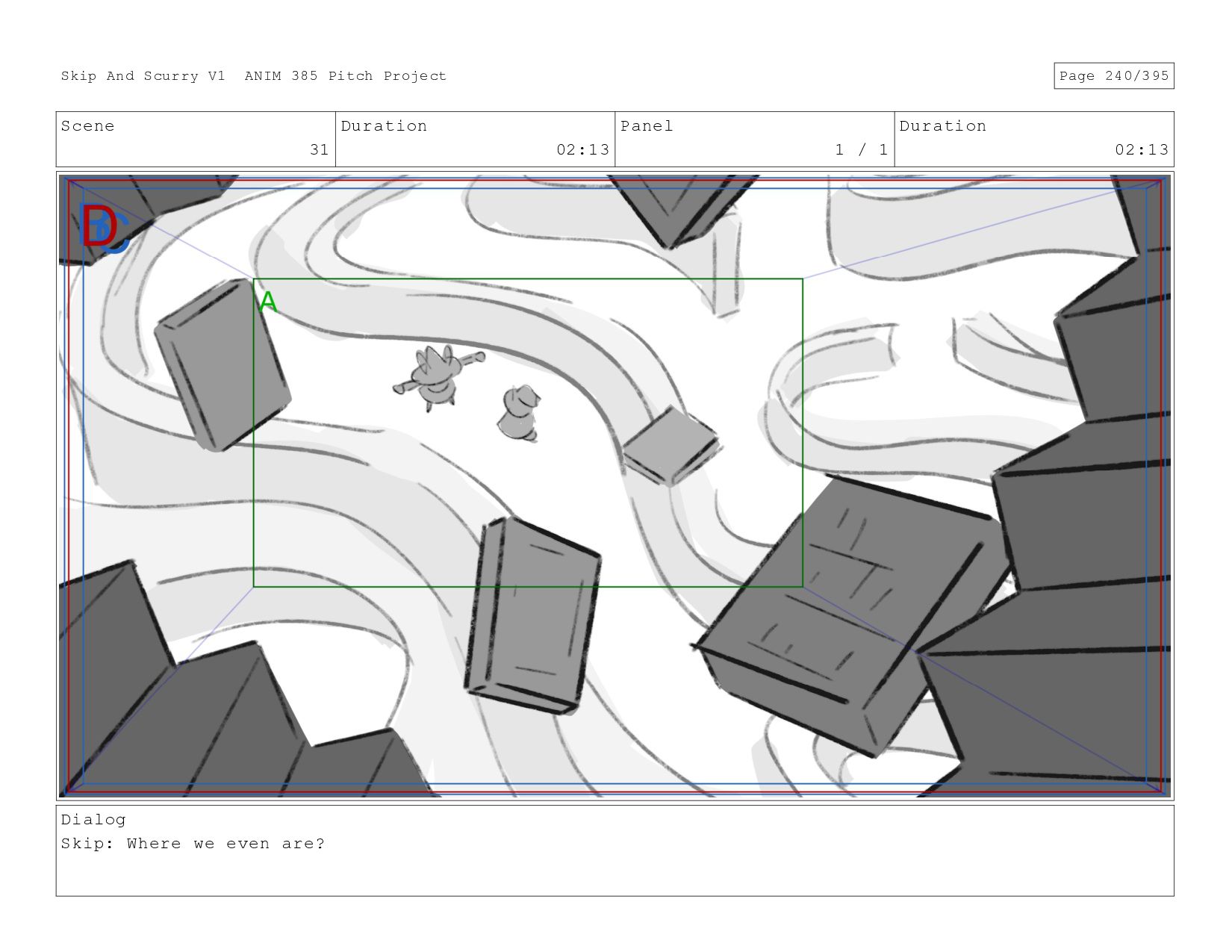 Dialog Skip: We've been wandering around aimlessly for an hour because you can't make a decision! Skip And Scurry V1 ANIM 385 Pitch Project Page 241/395