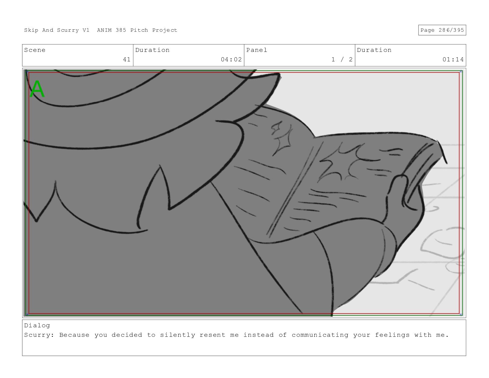 Dialog Scurry: Because you decided to silently resent me instead of communicating your feelings with me. Skip And Scurry V1 ANIM 385 Pitch Project Page 286/395