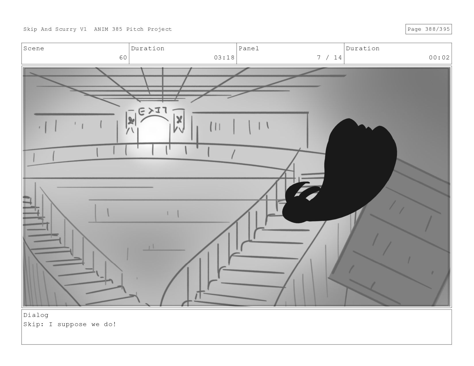 Dialog Skip: We've been wandering around aimlessly for an hour because you can't make a decision! Skip And Scurry V1 ANIM 385 Pitch Project Page 244/395