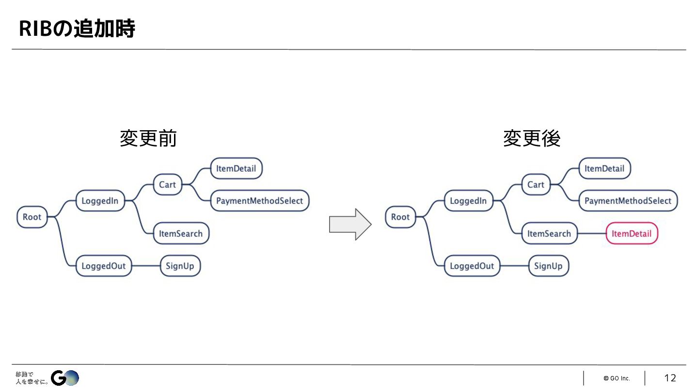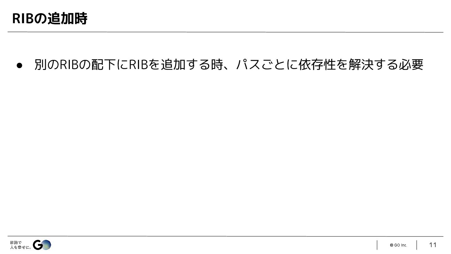 © GO Inc. • 別のRIBの配下にRIBを追加する時、パスごとに依存性を解決する必要 11 RIBの追加時