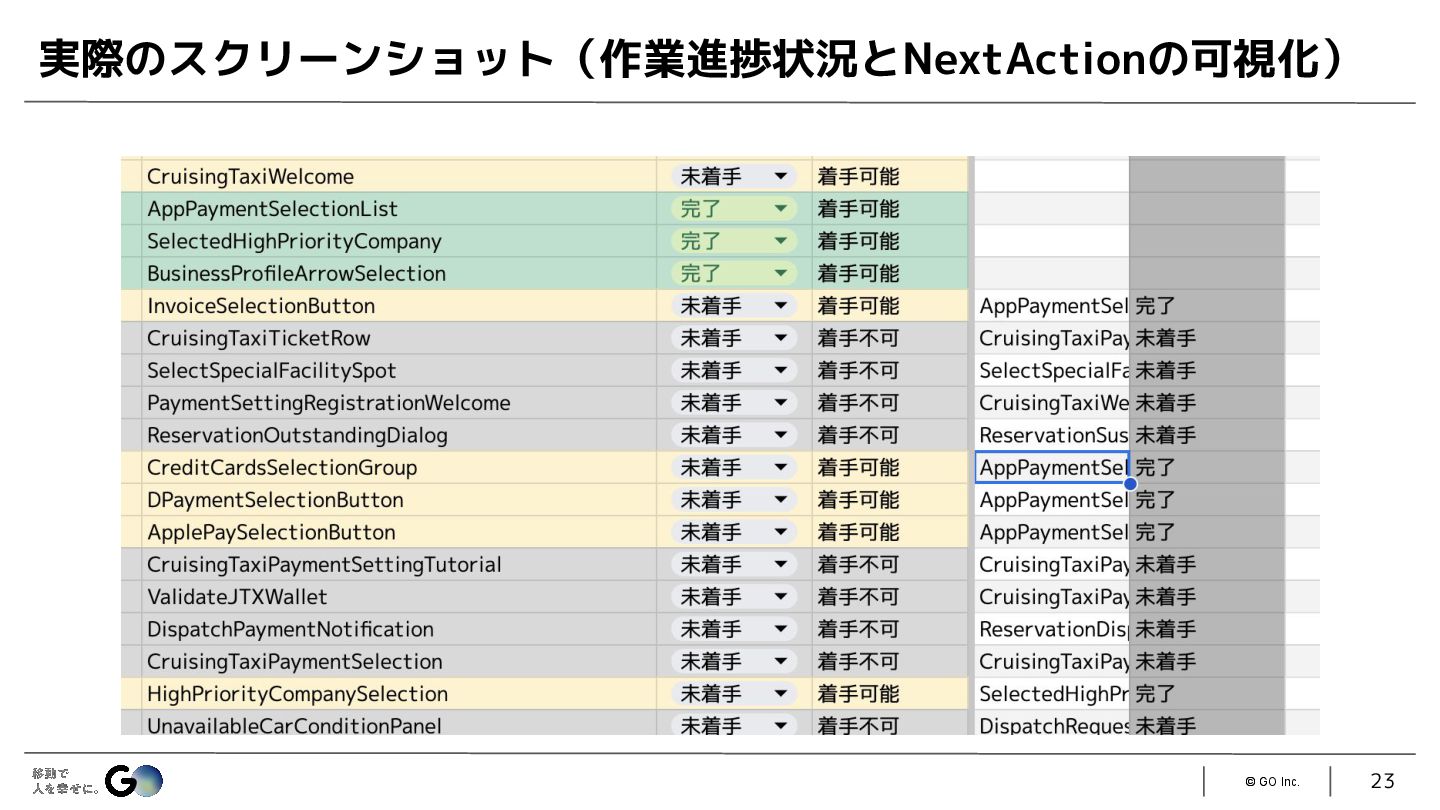 © GO Inc. 23 実際のスクリーンショット(作業進捗状況とNextActionの可視化)