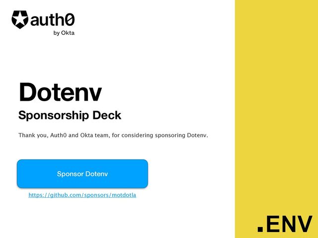 t Month-to-month after that. Continue for as long as it is bene fi cial to you and the developer community . Your company logo will be featured on dotenv with a link to your site . Bonus, your company logo will also be featured on dotenv- expand with a link to your site. Dotenv-expand receives an additional 10K views per month on GitHub and NPM and is downloaded almost 40M times per month. View Sponsorship Page https://github.com/sponsors/motdotla