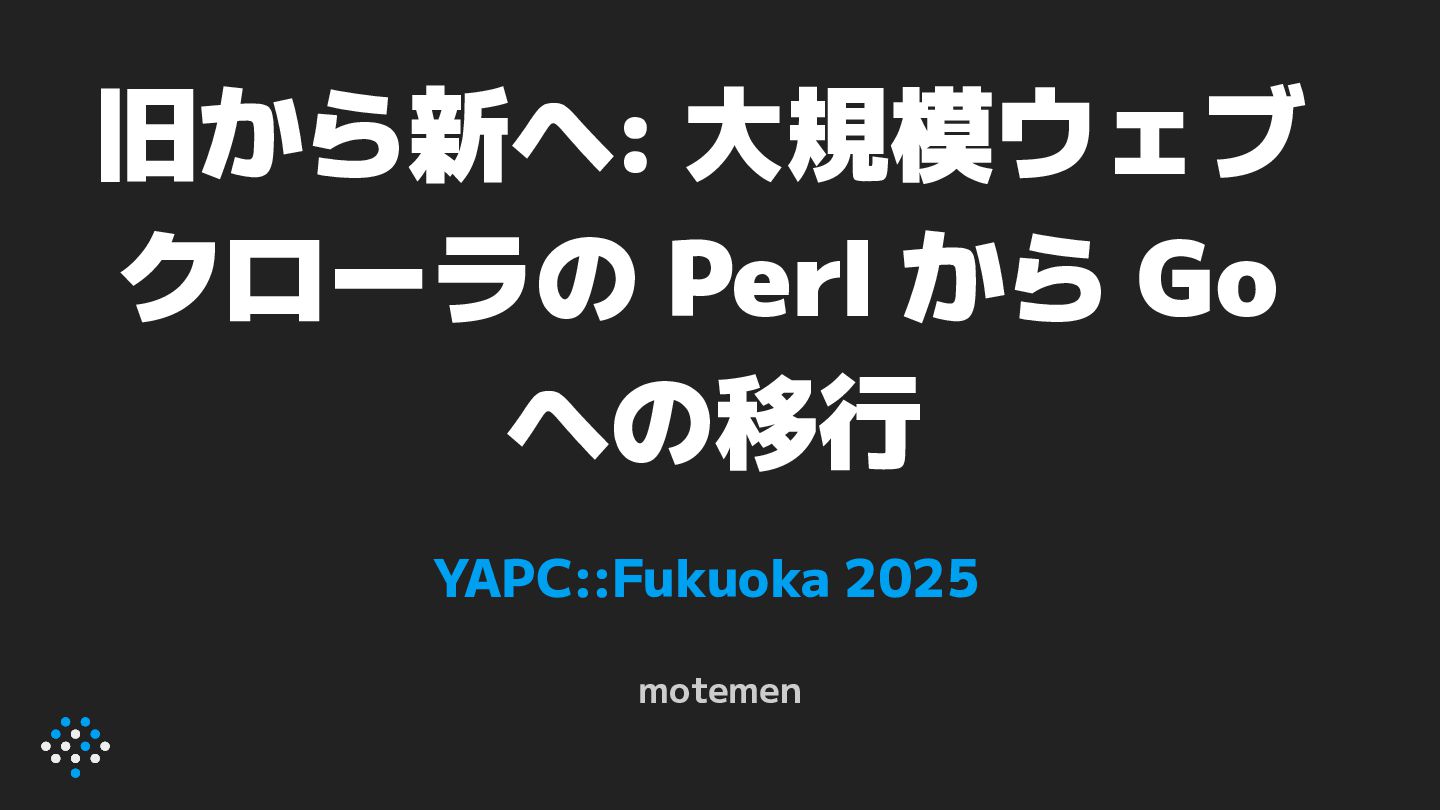 旧から新へ: 大規模ウェブクローラの Perl から Go への移行 / YAPC::Fukuoka 2025